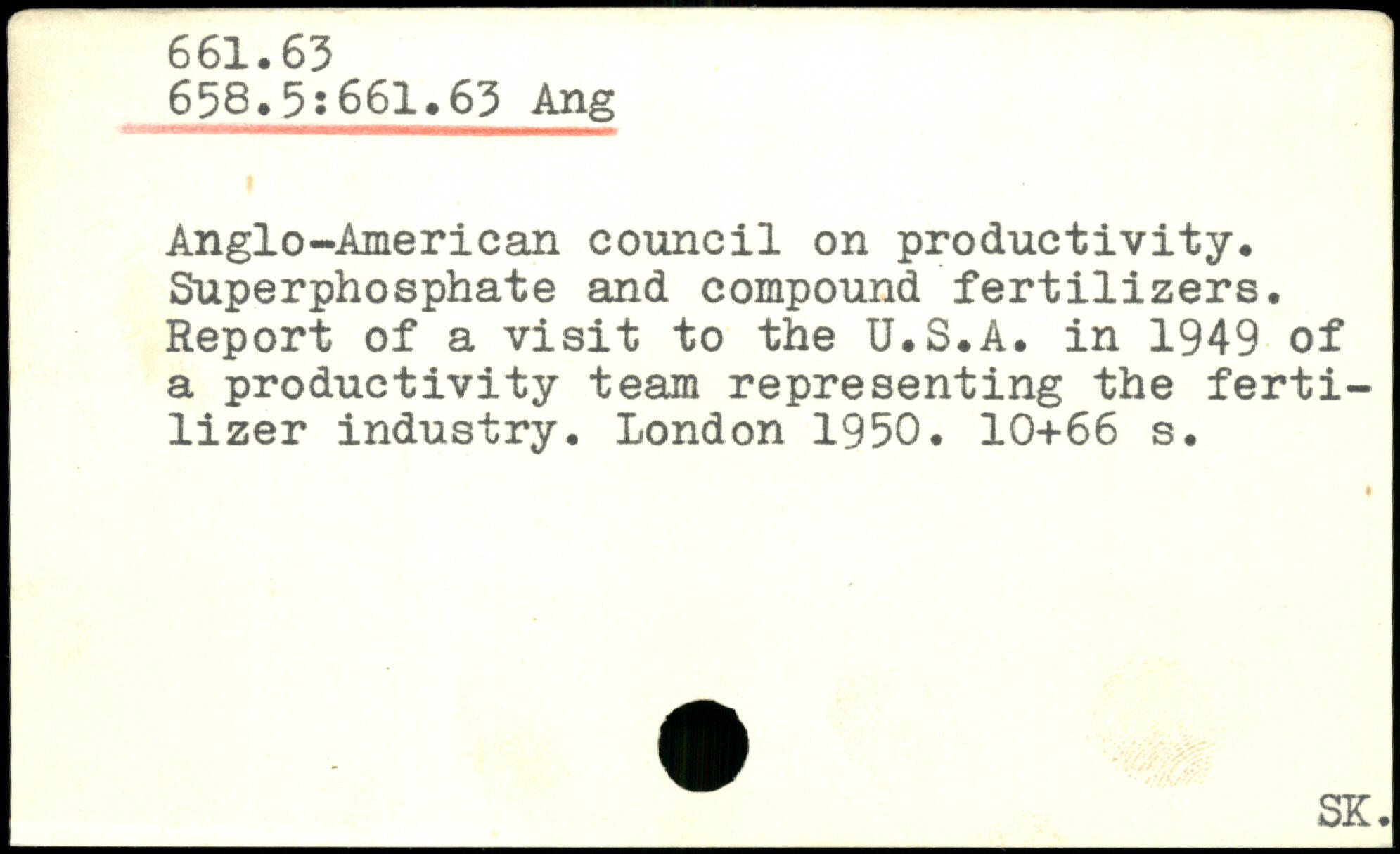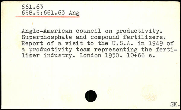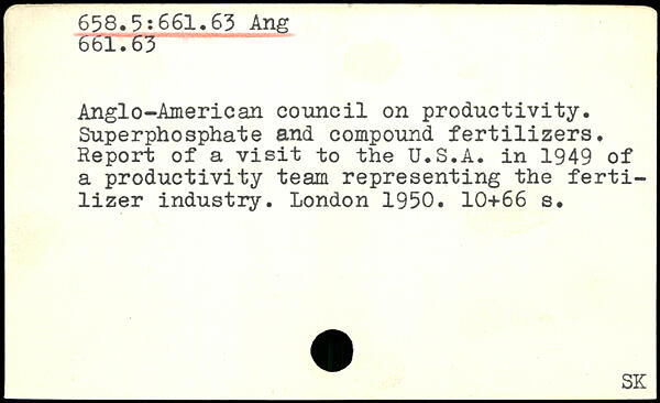 Anglo-American council on productivity. Superphosphate and compound fertilizers. Report of a visit to the U.S.A. in 1949 of a productivity team representing the fertilizer industry.