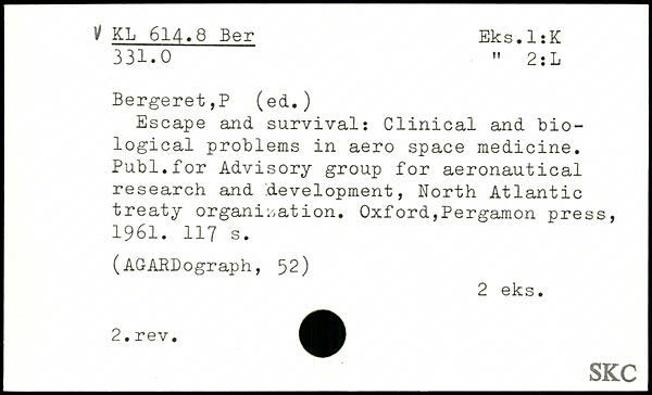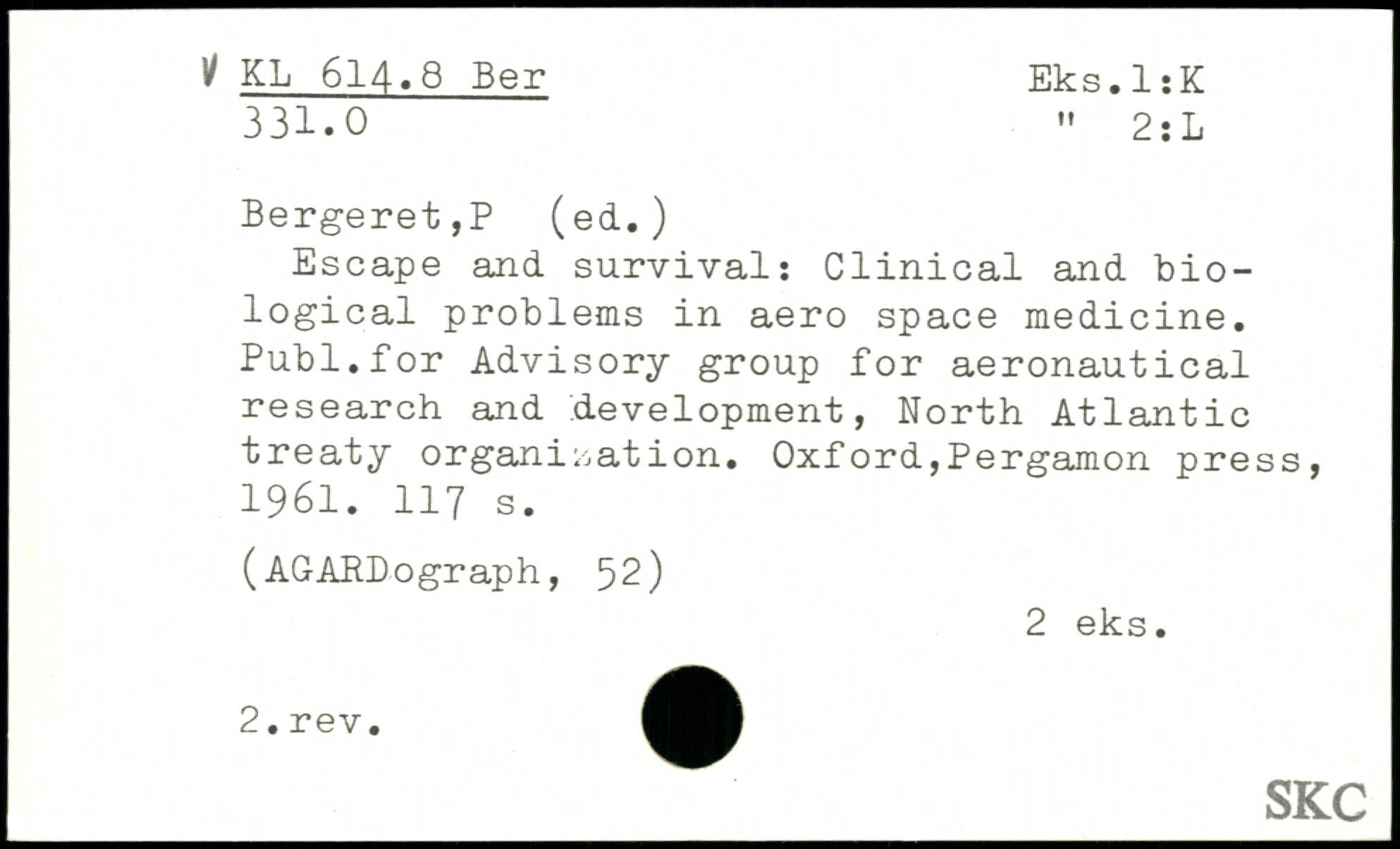 Bergeret,P (ed.) Escape and survival: Clinical and biological problems in aero space medicine. Publ.for Advisory group for aeronautical research and development, North Atlantic treaty organisation.