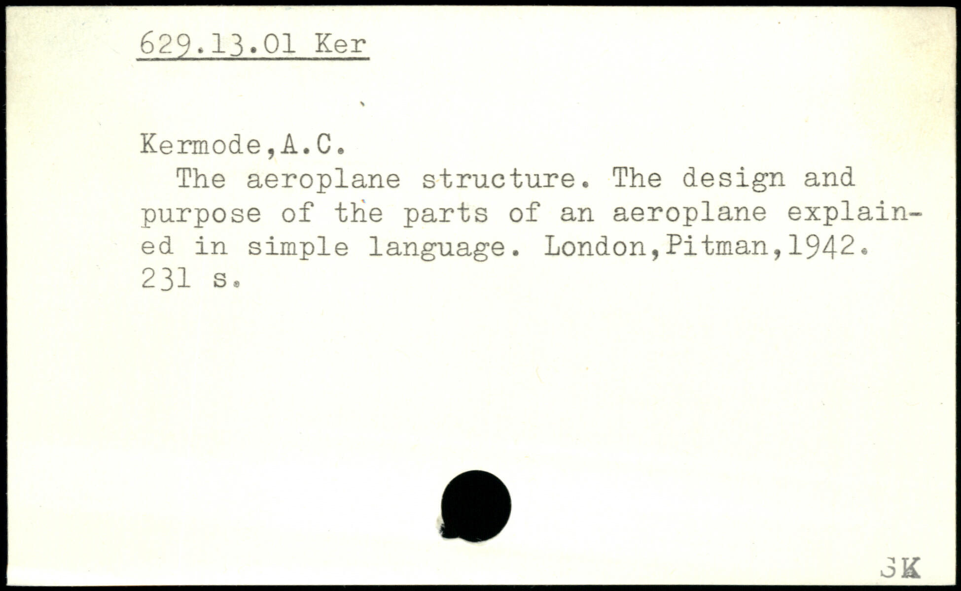 The aeroplane structure. The design and purpose of the parts of an aeroplane explained in simple language.