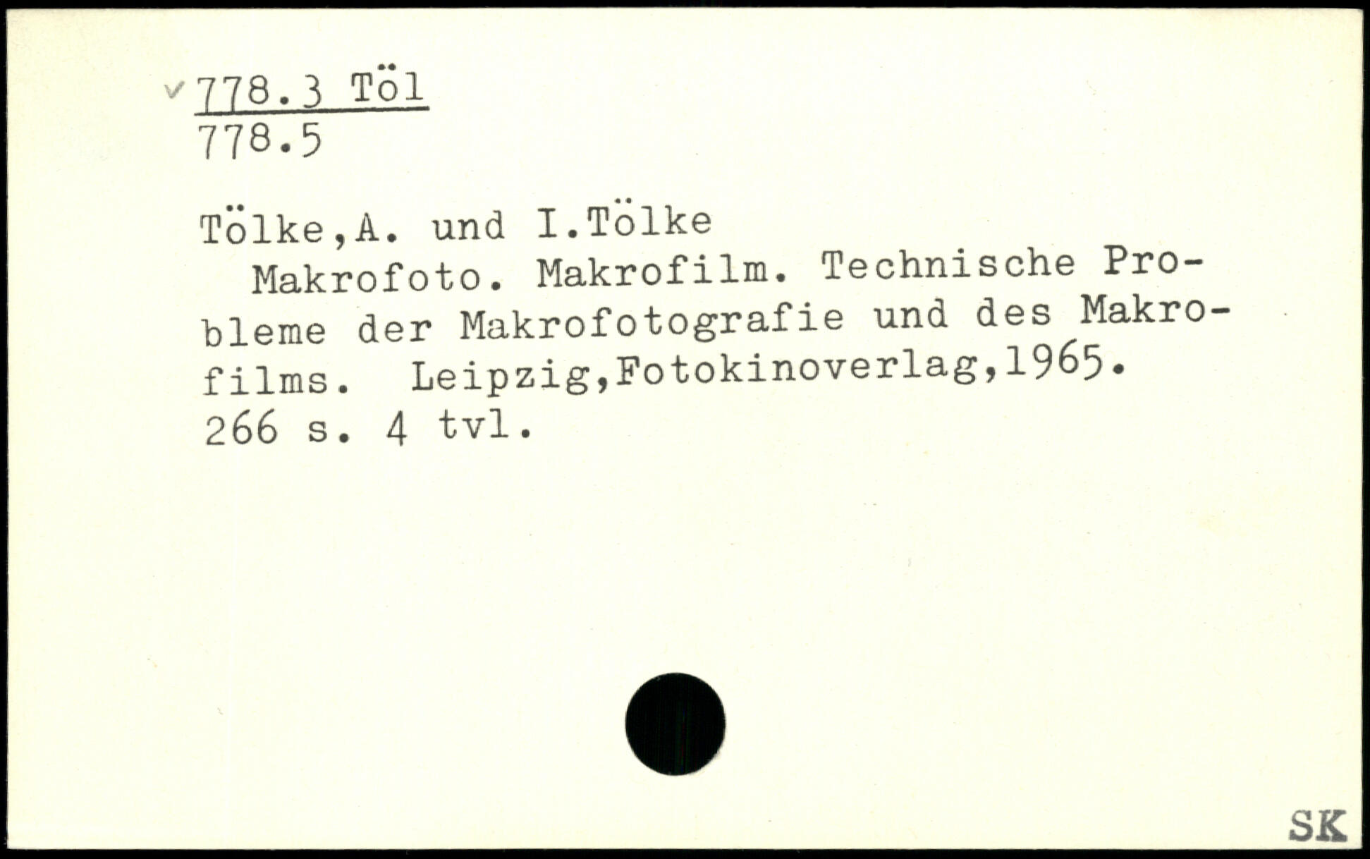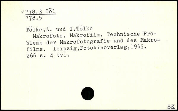 Tolke, A. und I.TÖlke Makrofoto. Makrofilm. Technische Probleme der Makrofotografie und des Makrofilms.