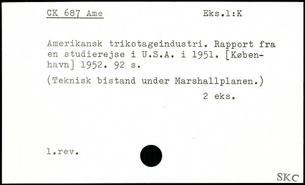 Amerikansk trikotageindustri. Rapport fra en studierejse i U.S.A. i 1951