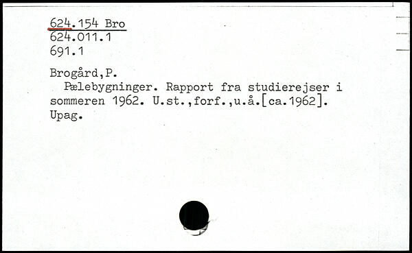 Ffeelebygninger. Rapport fra studierejser i sommeren 1962. U.st.,forf.,u.å.[ca.1962]. Upag.