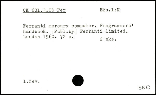 Ferranti mercury computer. Programmers’ handbook.