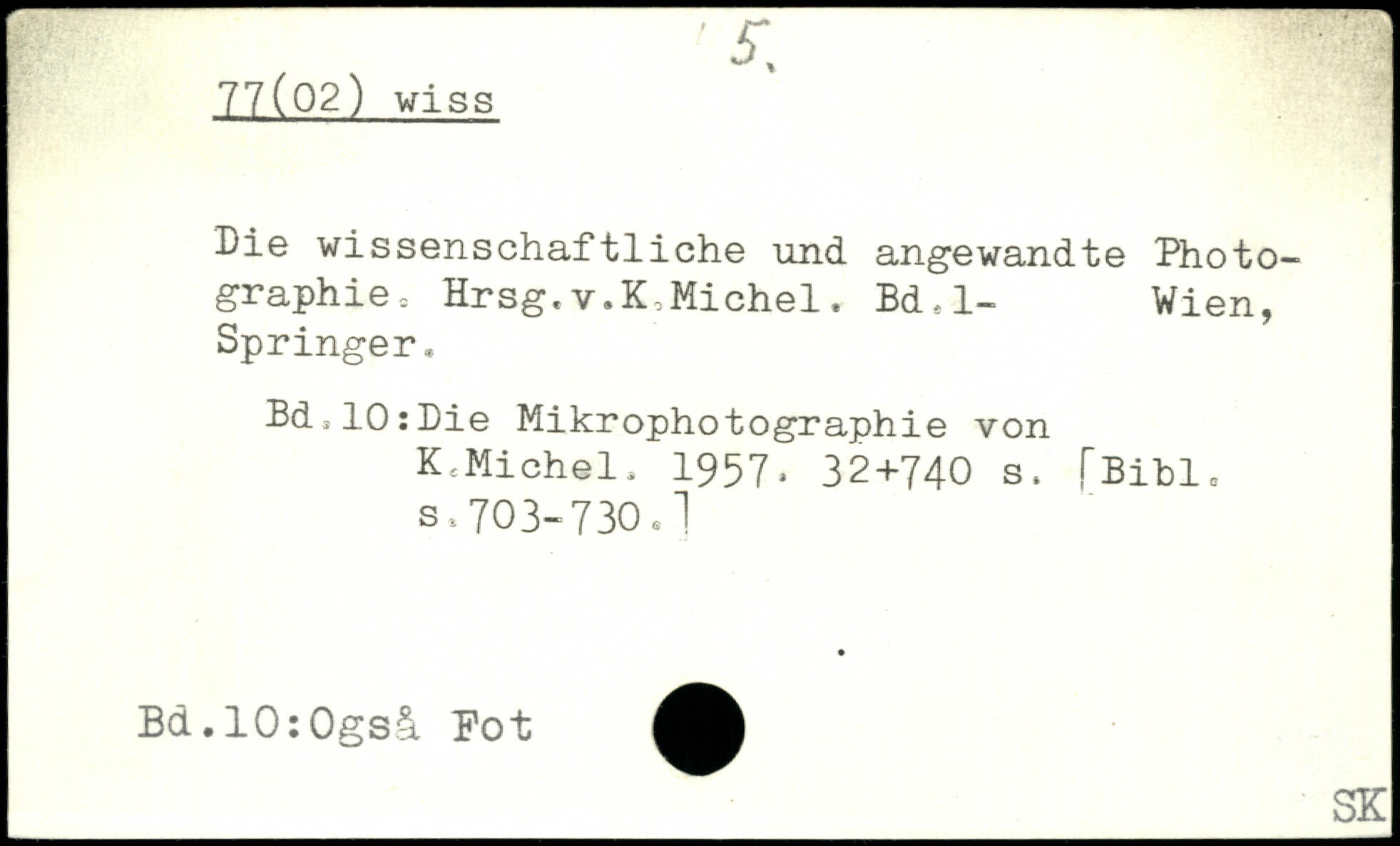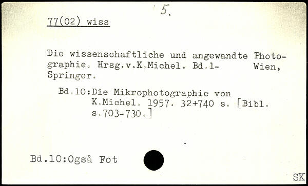 Die wissenschaftliche und angewandte Photo-graphie = Hrsg,v.K,Michel. Bd,l- Wien, Springer, Bd310:Die Mikrophotographie von K.Michel, 1957
