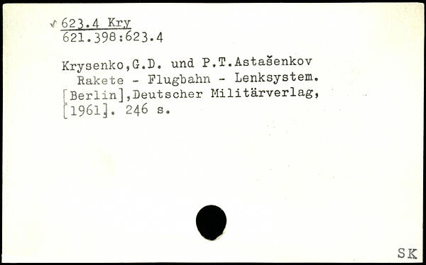 Kry3enko,G.D. und P.T.Astasenkov Rakete - Flugbahn - Lenksystem. rBerlin],Deutscher Militärverlag,