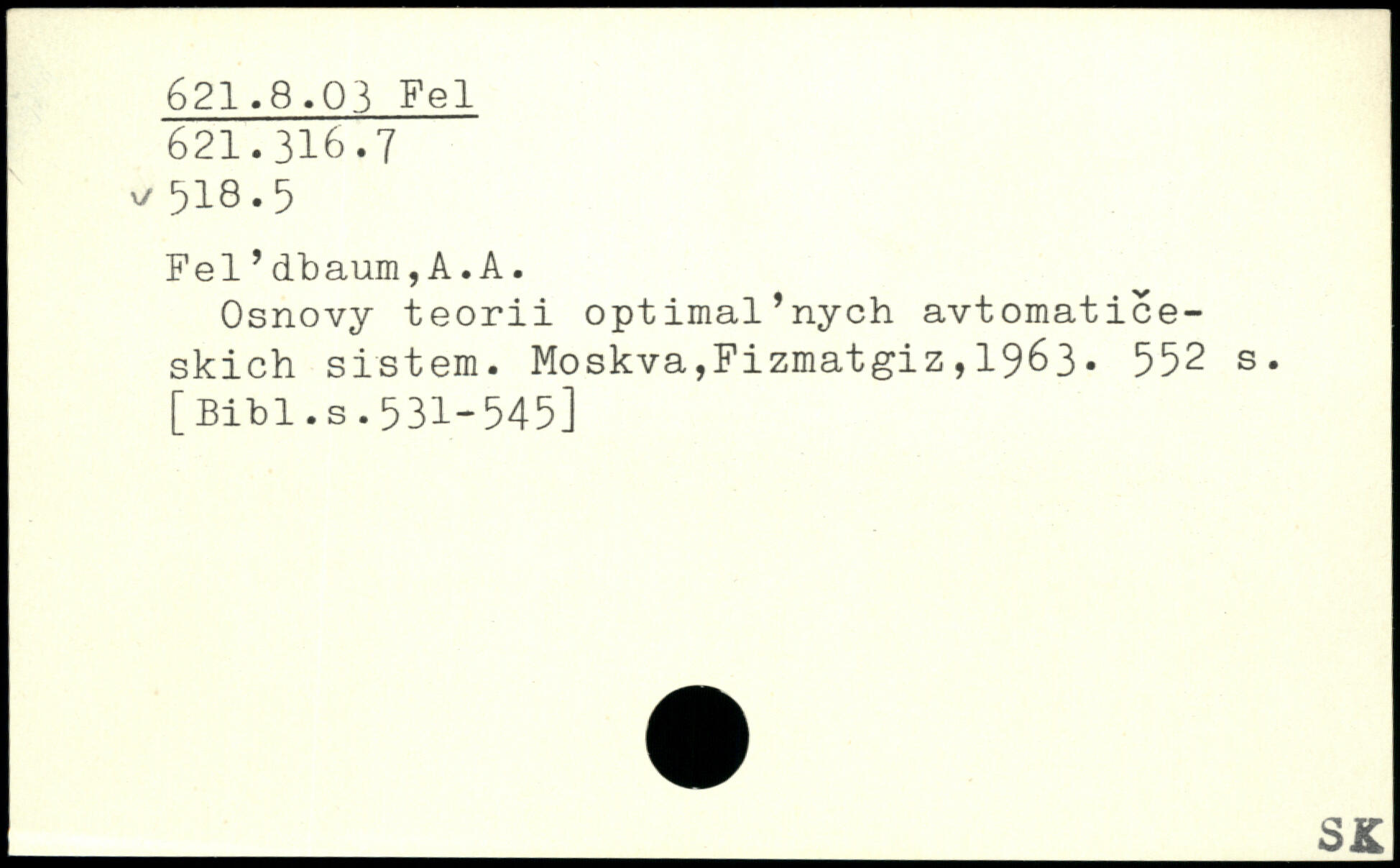 Fel ’dbaum,A.A. Osnovy teorii optimal’nych avtomatice-skich sistem.