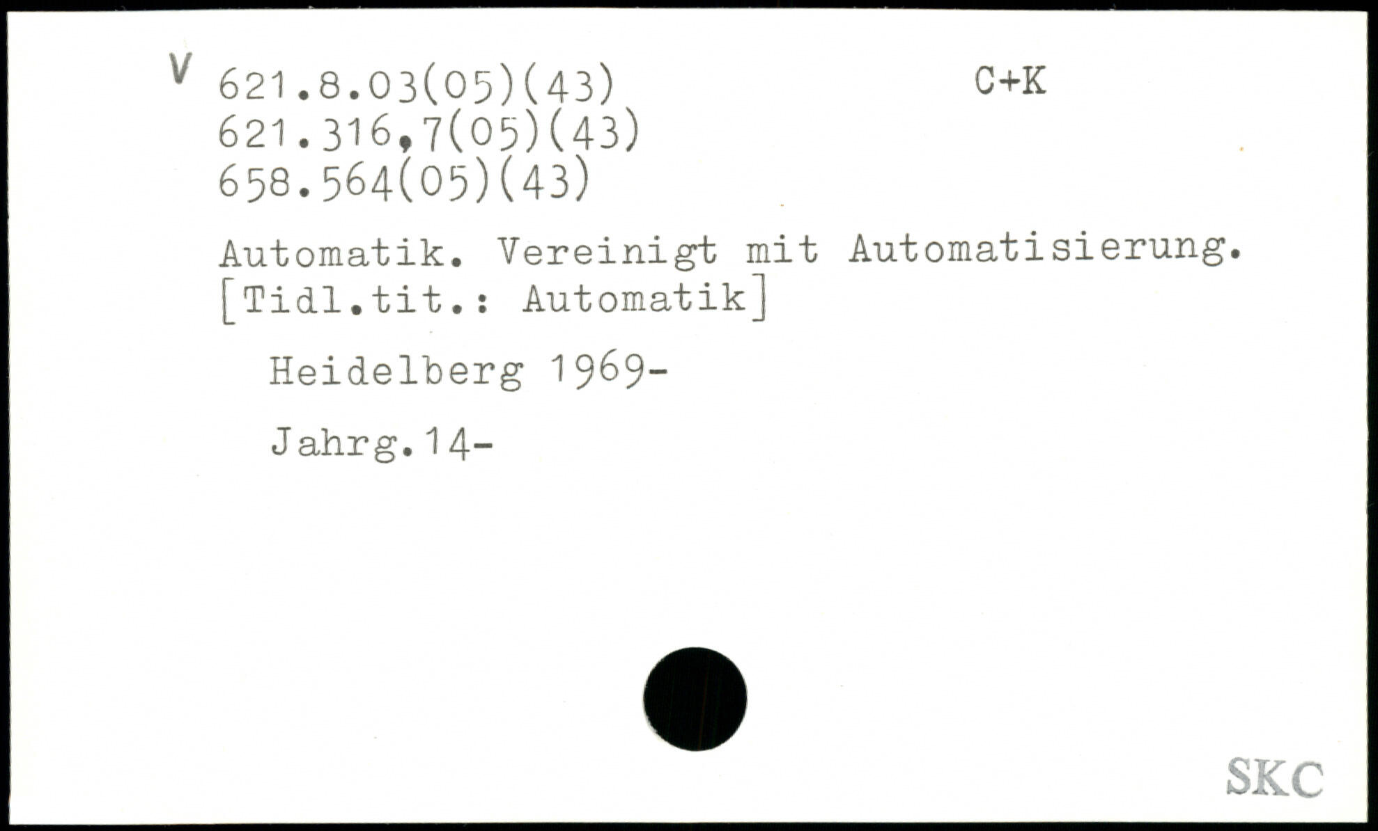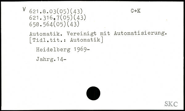 Automatik. Vereinigt mit Automatisierung. [Tidl.tit.: Automatik] Heidelberg 19&9- J ahrg.14-