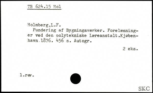 Fundering af Bygningsværker. Forelæsninger ved den nolytekniske Læreanstalt.Kjøben-havn1876.