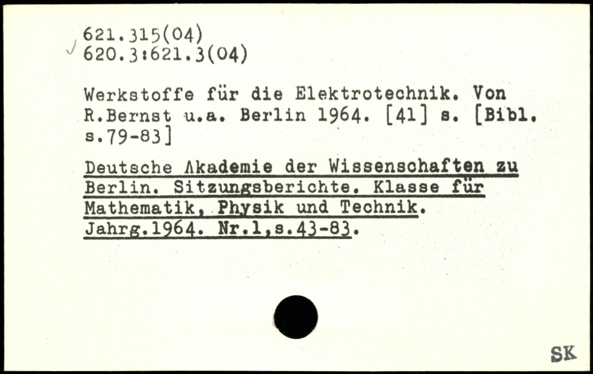 Werkstoffe für die Elektrotechnik. Von R.Bernst u.a.
