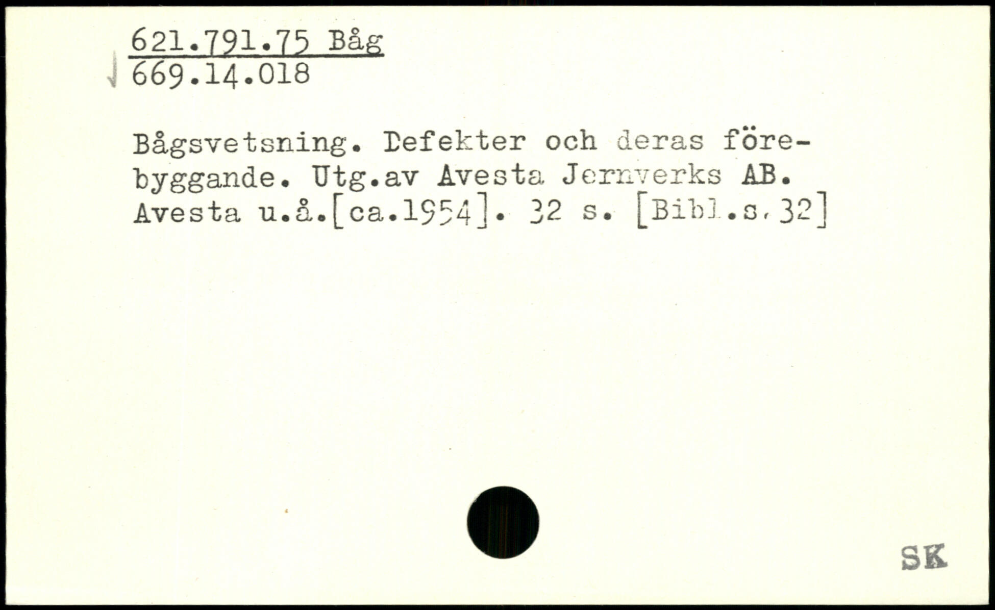 Bågsvetsning. Defekter och deras förebyggande. Utg.av Avesta Jernverks AB. Avesta u.å.[ca.1354].