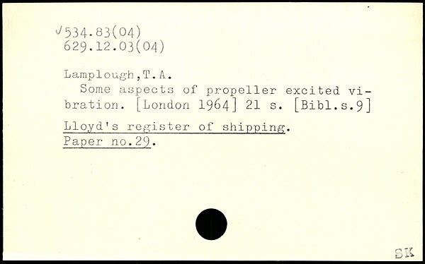Lamplough ,T. A.. Some aspects of propeller excited vibration.