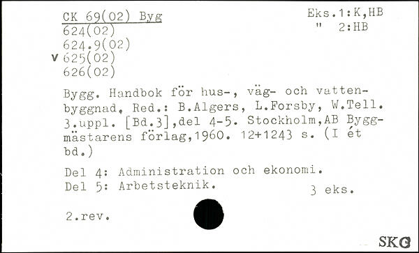 Bygg. Handbok for hus-, vag- och vatten-byggnad, Red.: B.Algers, L.Forsby, W.Tell.