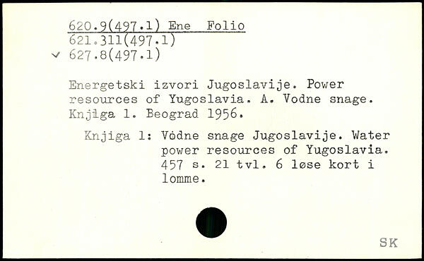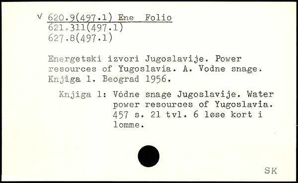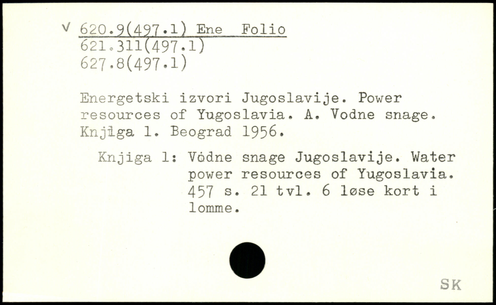 Energetski izvori Jugoslavije. Power resources of Yugoslavia. A. Vodne snage. Knjiga 1.