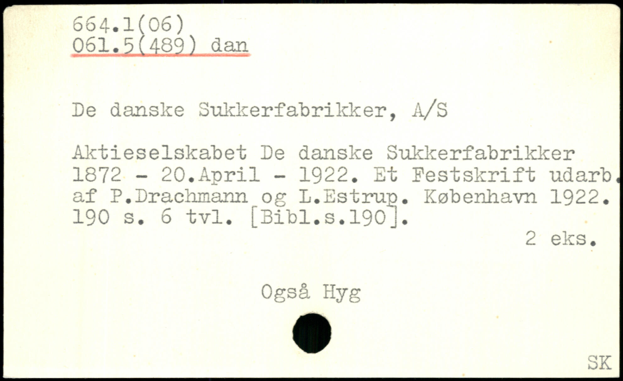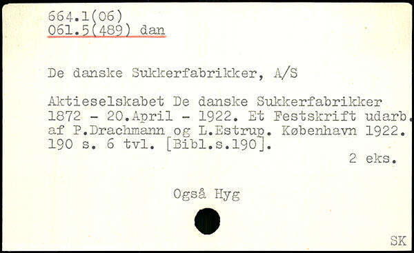 De danske Sukkerfabrikker, A/S Aktieselskabet De danske Sukkerfabrikker 1872 - 20.April - 1922. Et Festskrift udarb, af P.Drachmann og L.Estrup.