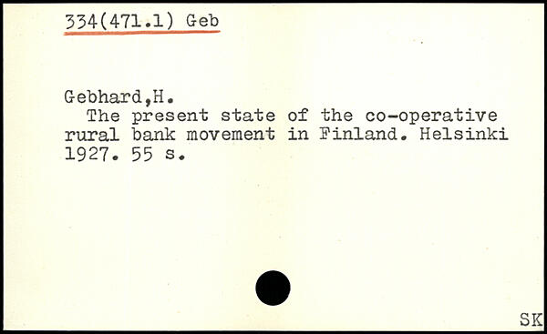 The present state of the co-operative rural bank movement in Finland.