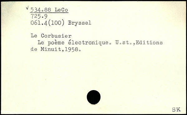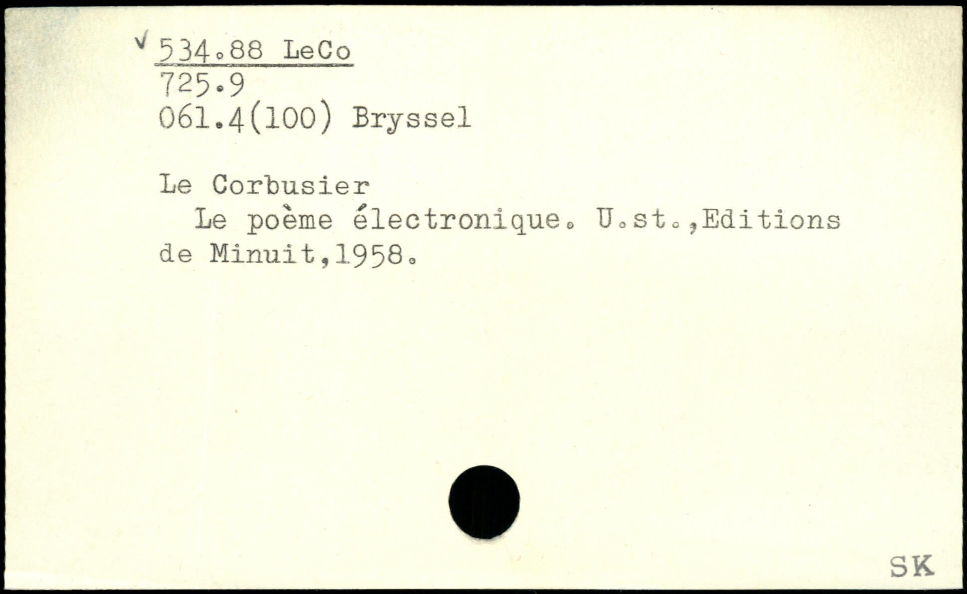 061.4(100) Bryssel Le Corbusier Le poème électroniquee U0st0,Editions de Minuit,19580