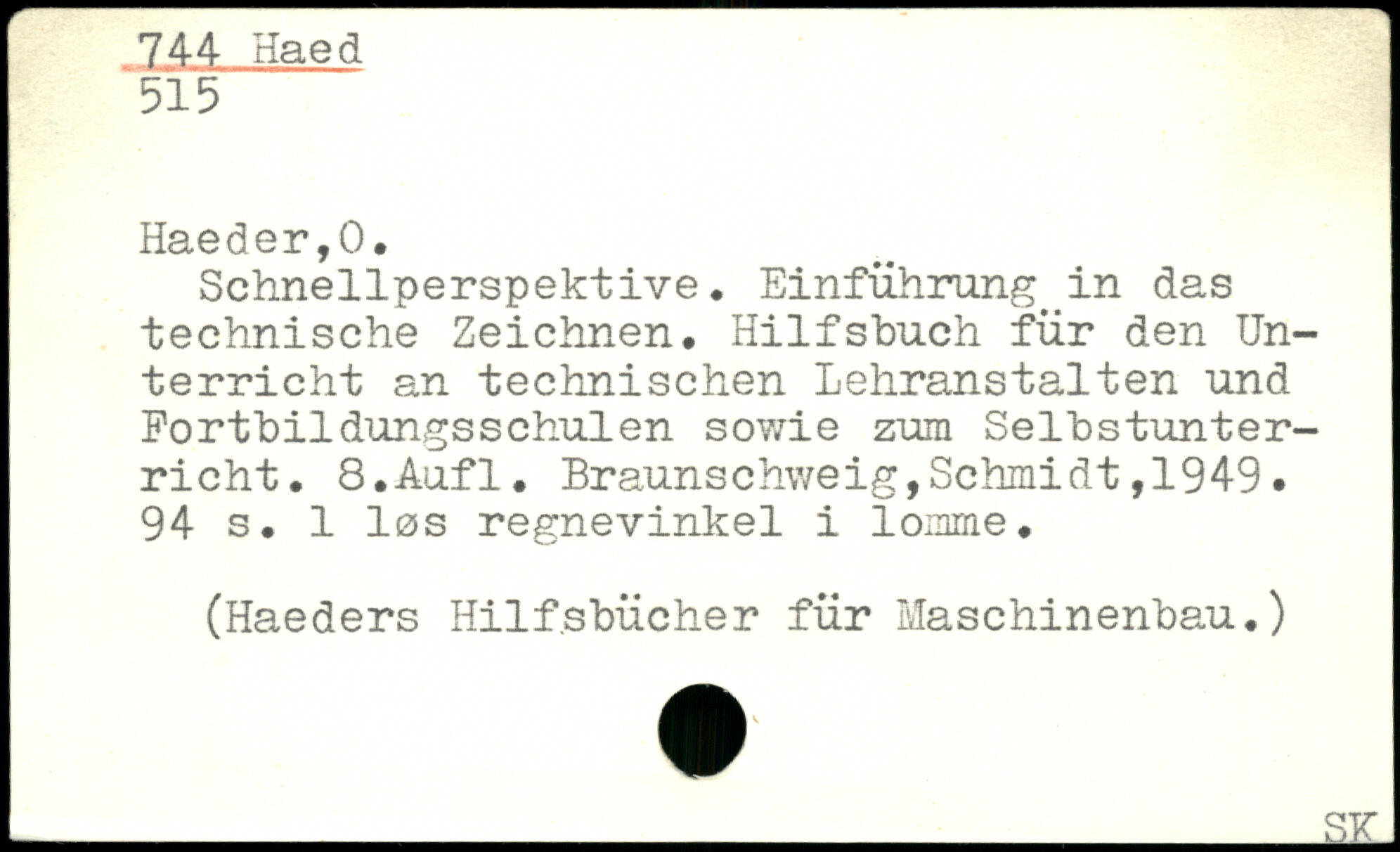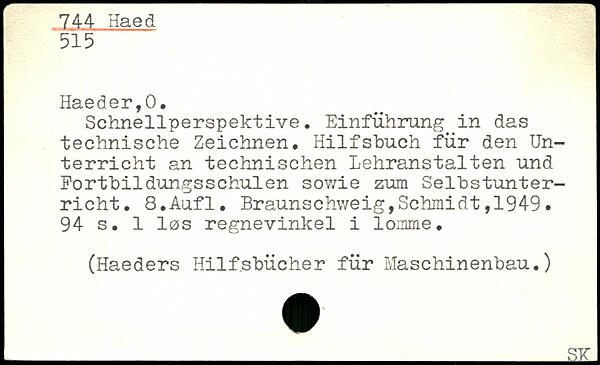 Schnellperspektive, Einführung in das technische Zeichnen, Hilfsbuch für den Unterricht an technischen Lehranstalten und Portbildungsschulen sowie zum Selbstunterricht. 8,Aufl.