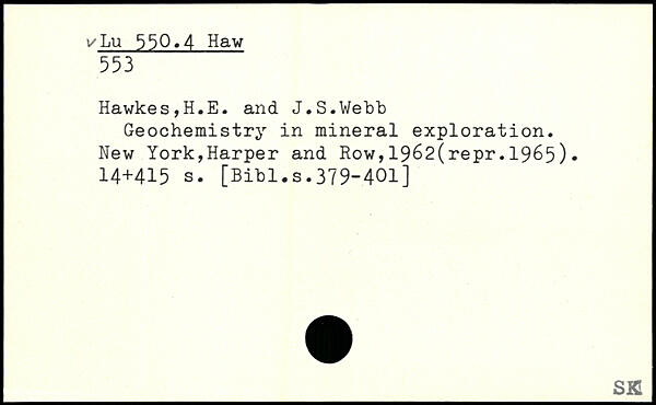 Geochemistry in mineral exploration. New York,Harper and Row,19&2(repr.1965).