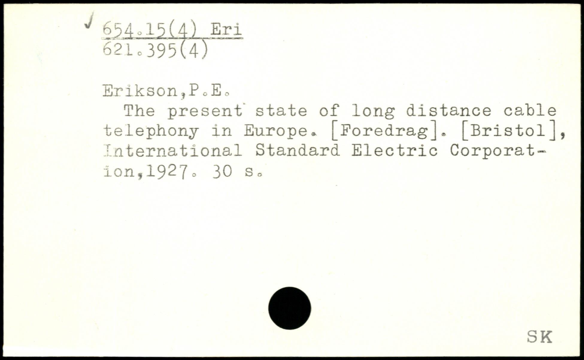 The present' state of long distance cable telephony in Europe.