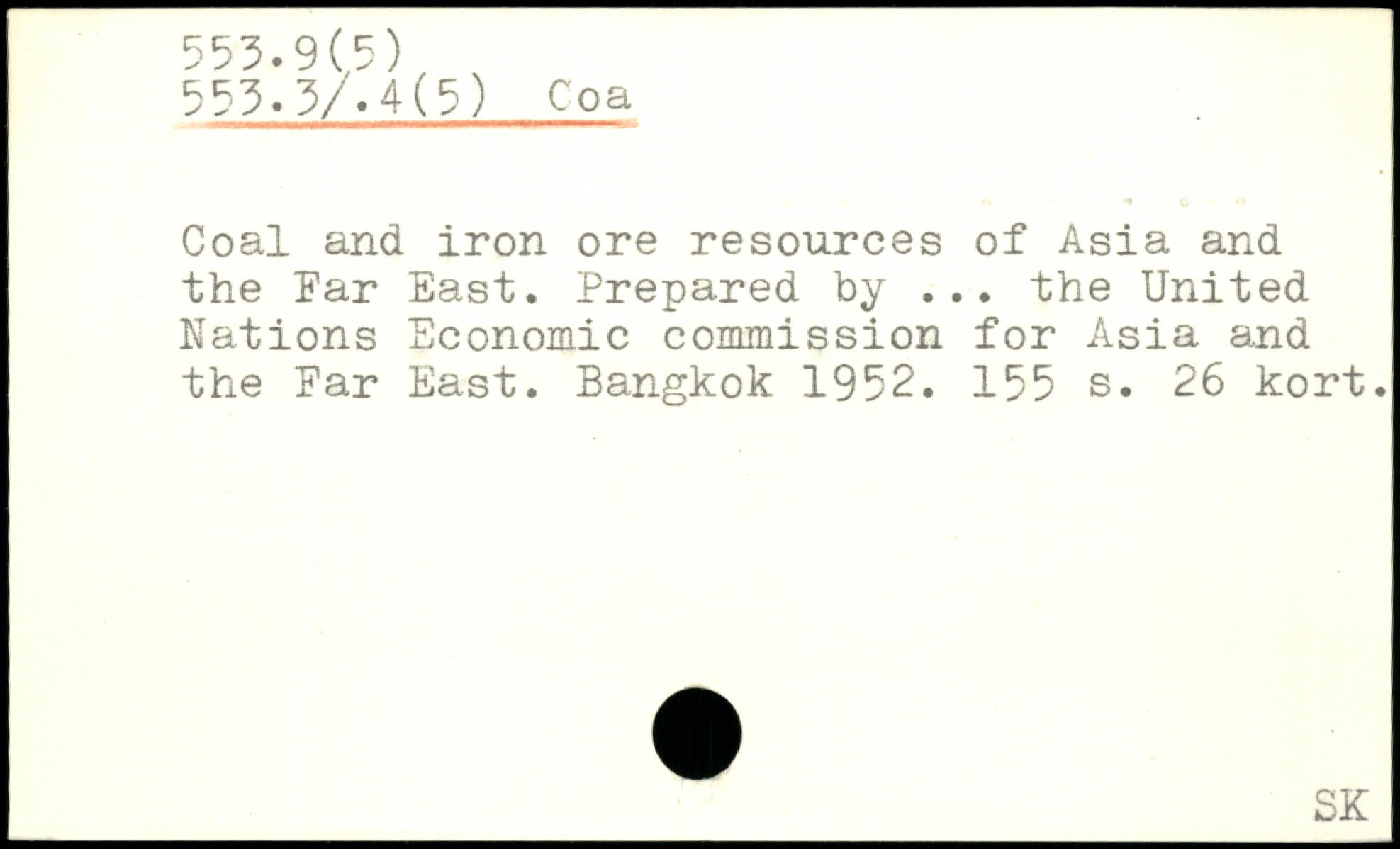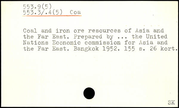 Coal and iron ore resources of Asia and the Far East. Prepared by ... the United Nations Economic commission for Asia and the Far East. Bangkok 1952.