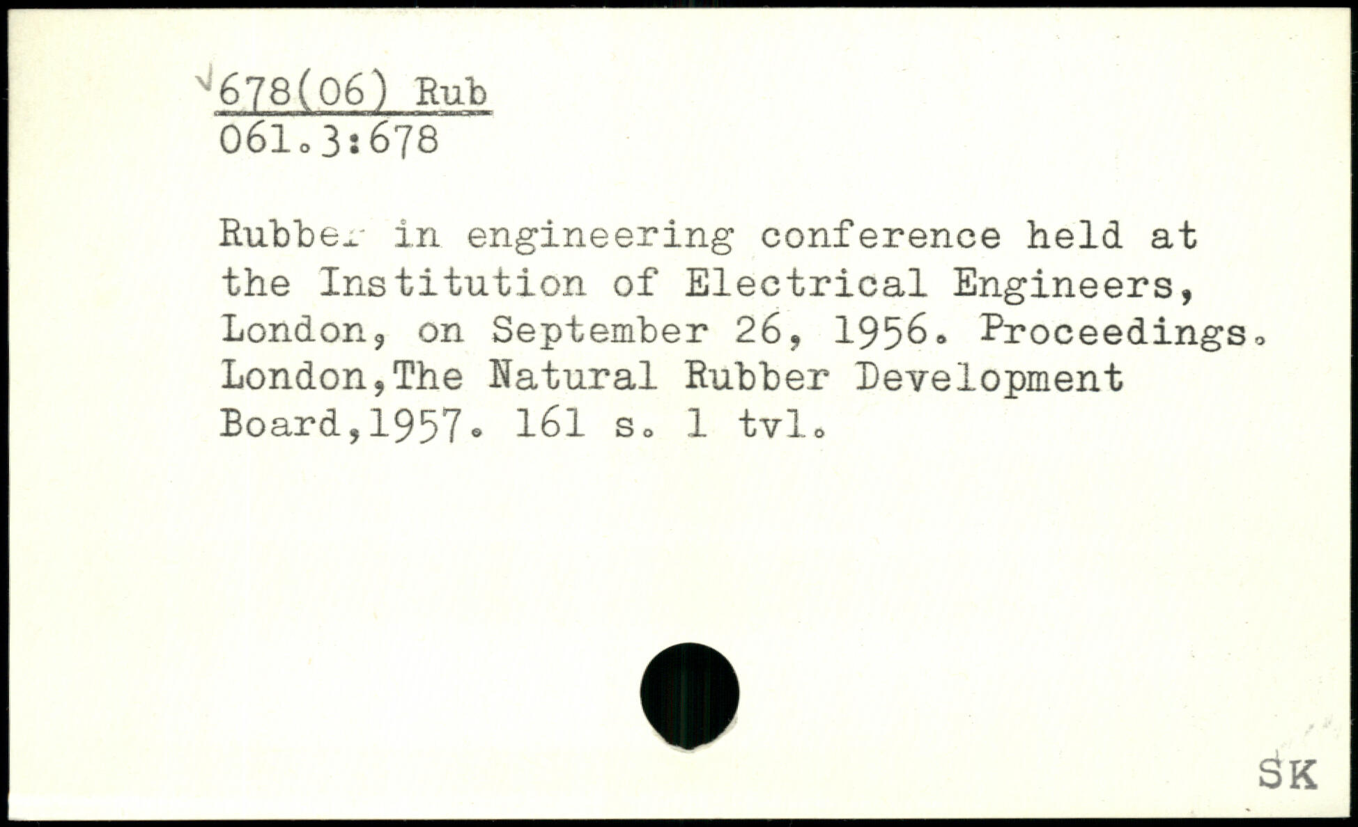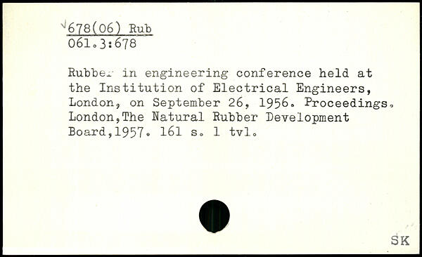 Rub 136. in engineering conference held at the Institution of Electrical Engineers, London, on September 26, 1956. Proceedings, London,The Natural Rubber Development Board,1957®
