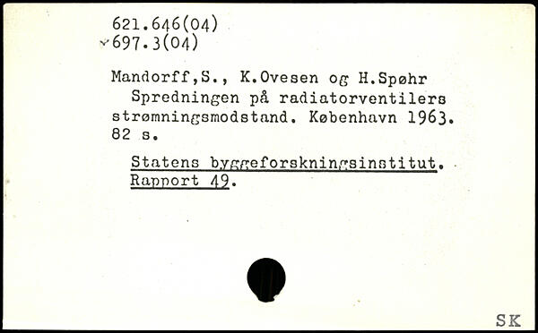 Mandorff,S., K.Ovesen og H.Spøhr Spredningen på radiatorventilers strømningsmodstand.
