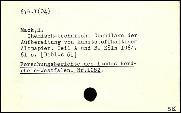 Chemisch-technische Grundlage der Aufbereitung von kunststoffhaltigem Altpapier. Teil A und B.