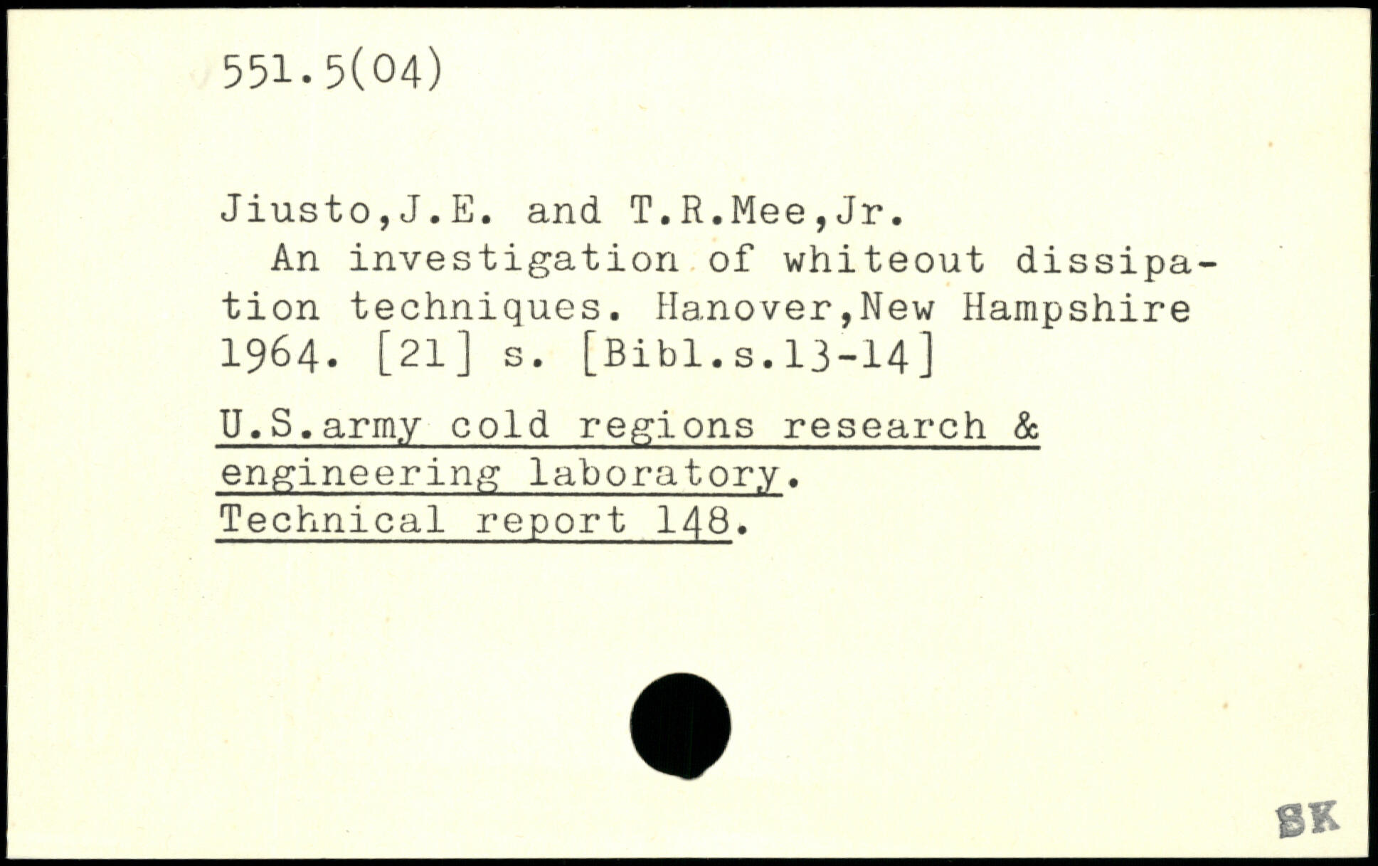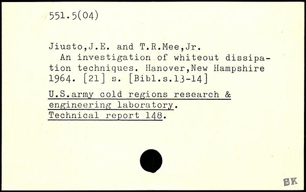 Jiusto,J.E. and T.R.Mee,Jr. An investigation of whiteout dissipation techniques. Hanover,New Hampshire 1964. [21] s.