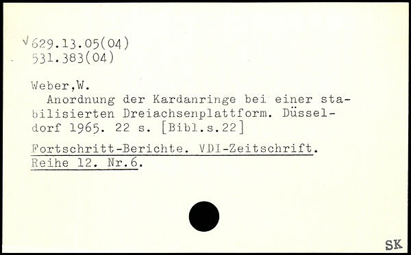 Anordnung der Kardanringe bei einer stabilisierten Dreiachsenplattform. Düsseldorf 1965.