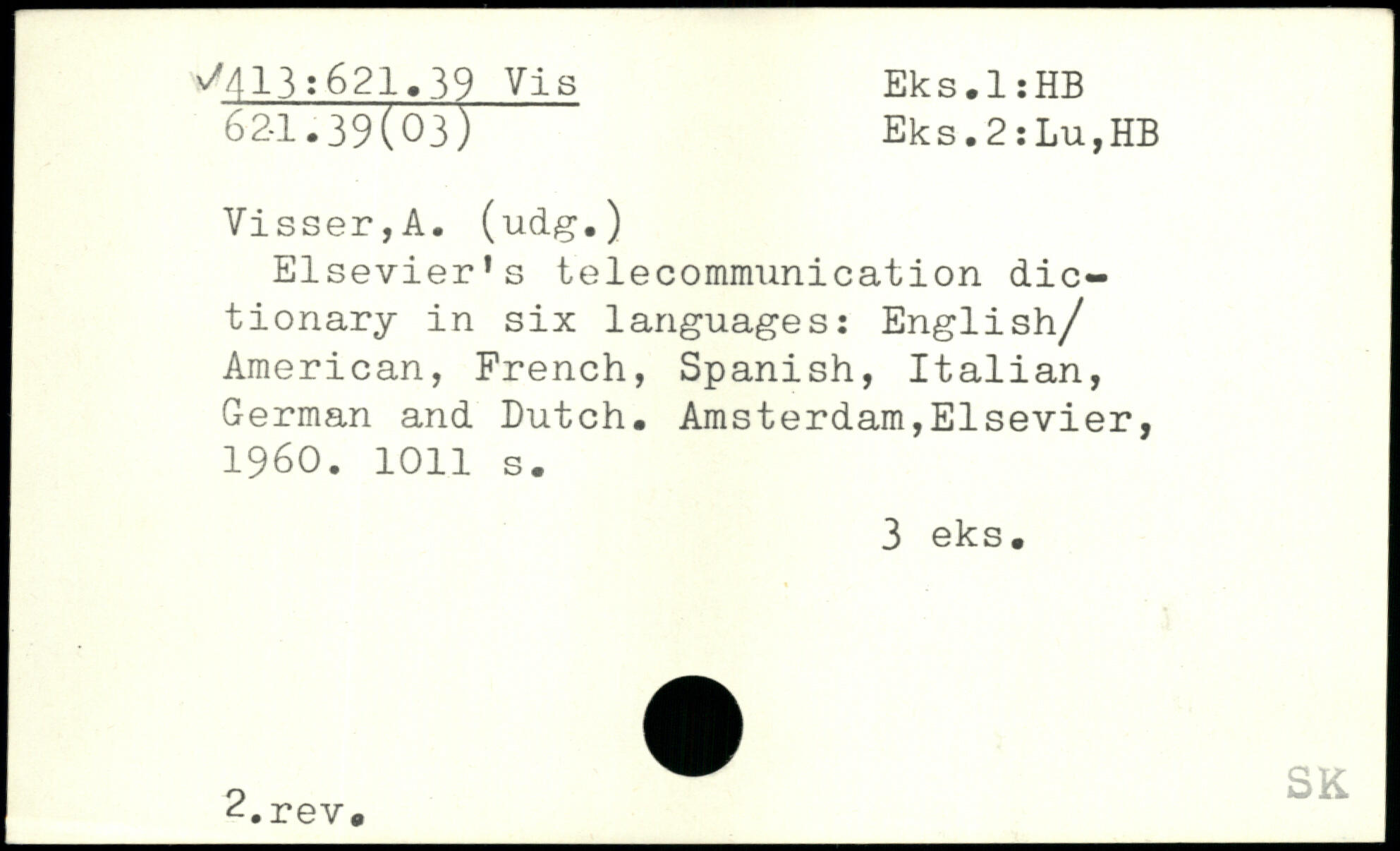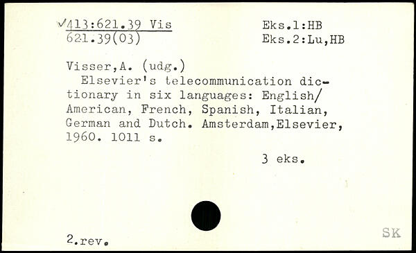 Elsevier’s telecommunication dictionary in six languages: English/ American, French, Spanish, Italian, German and Dutch.