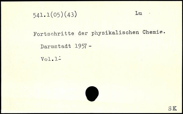 Fortschritte der physikalischen Chemie. Darmstadt 1957 ~ Vol.l-