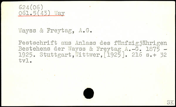 Festschrift aus Anlass des fünf zig jährigen Bestehens der Wayss & Freytag A.-G. 1875 -1925. Stuttgart, ,7ittwer, [1925 j.