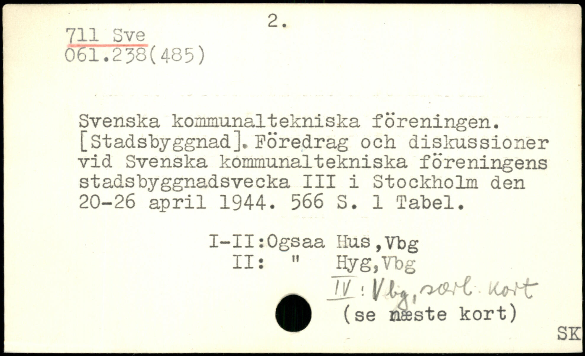 Svenska kommunaltekniska föreningen. [Stadsbyggnad]. Föredrag och diskussioner vid Svenska kommunaltekniska föreningens stadsbyggnadsvecka III i Stockholm den 20-26 april 1944.