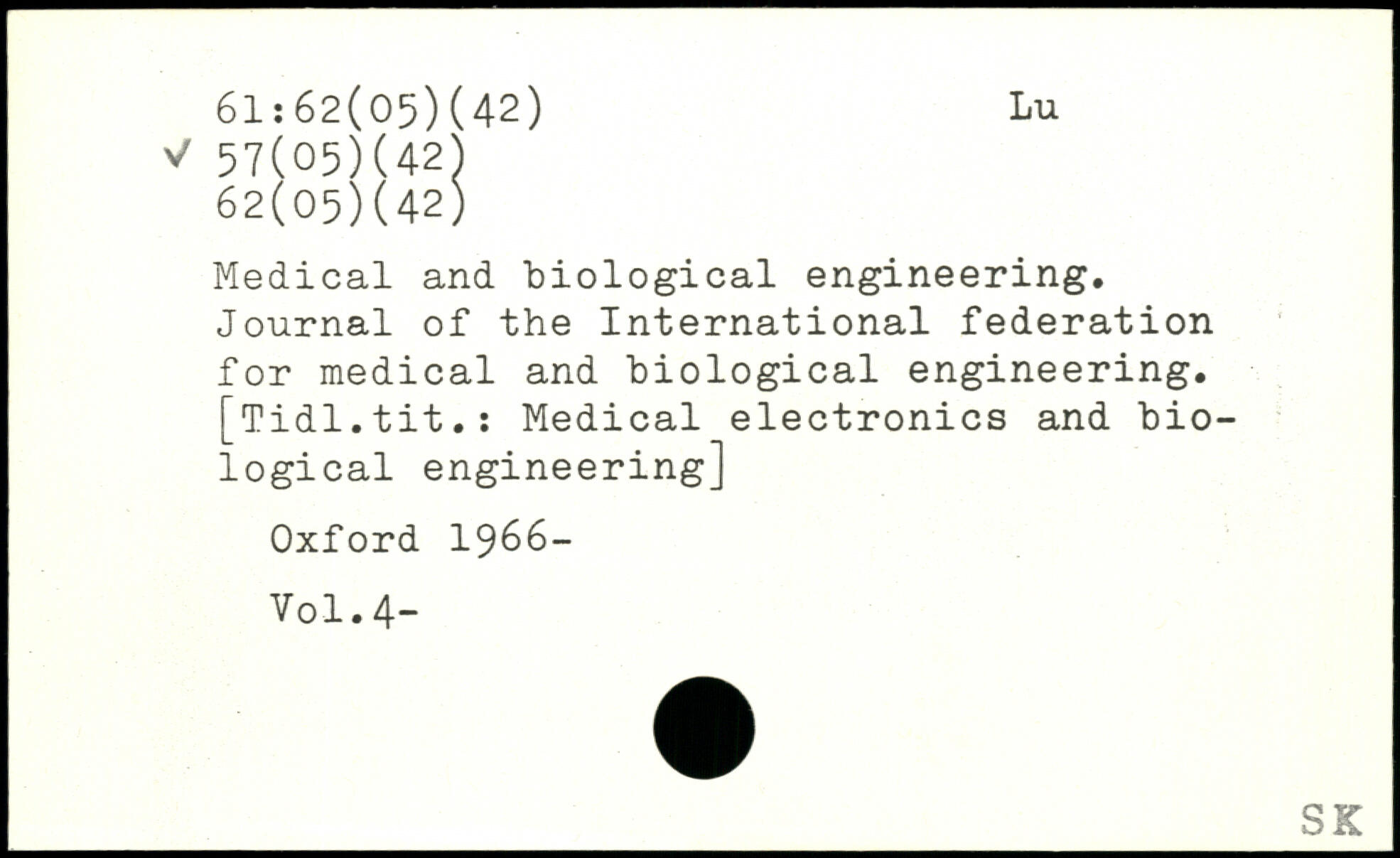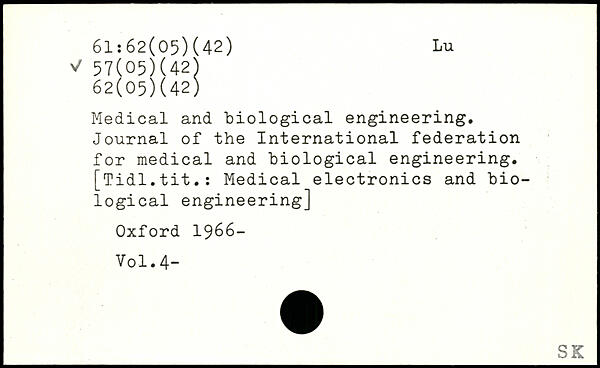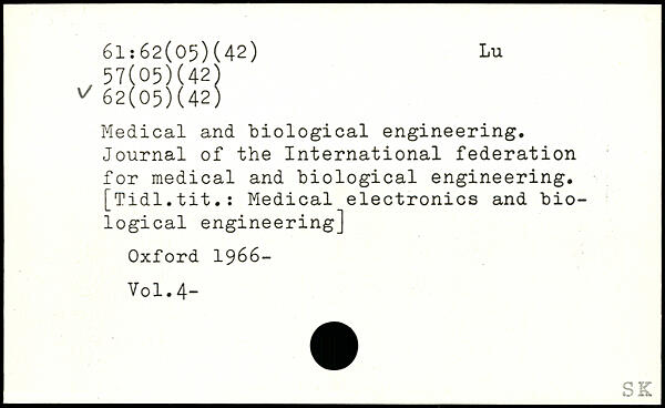 Medical and biological engineering. Journal of the International federation for medical and biological engineering. [Tidl.tit.: Medical electronics and biological engineering]