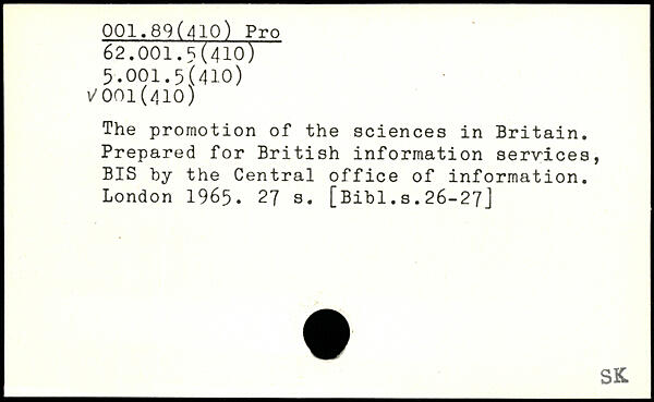 The promotion of the sciences in Britain. Prepared for British information services, BIS by the Central office of information.