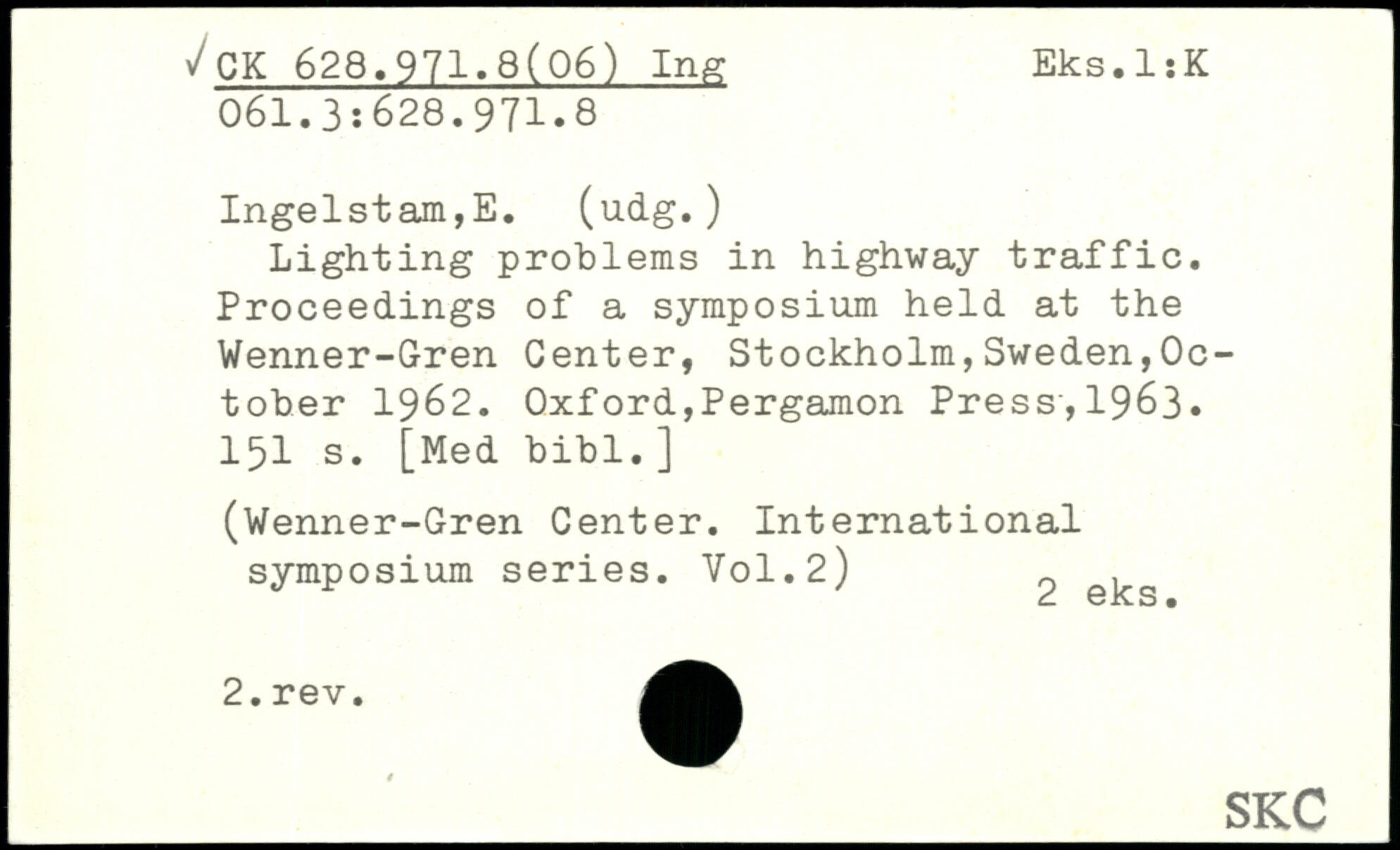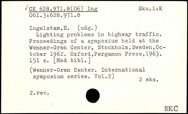Lighting problems in highway traffic. Proceedings of a symposium held at the Wenner-Gren Center, Stockholm,Sweden,October 1962.