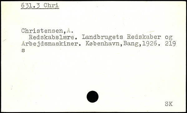 Redskabslære. Landbrugets Redskaber og Arbejdsmaskiner.