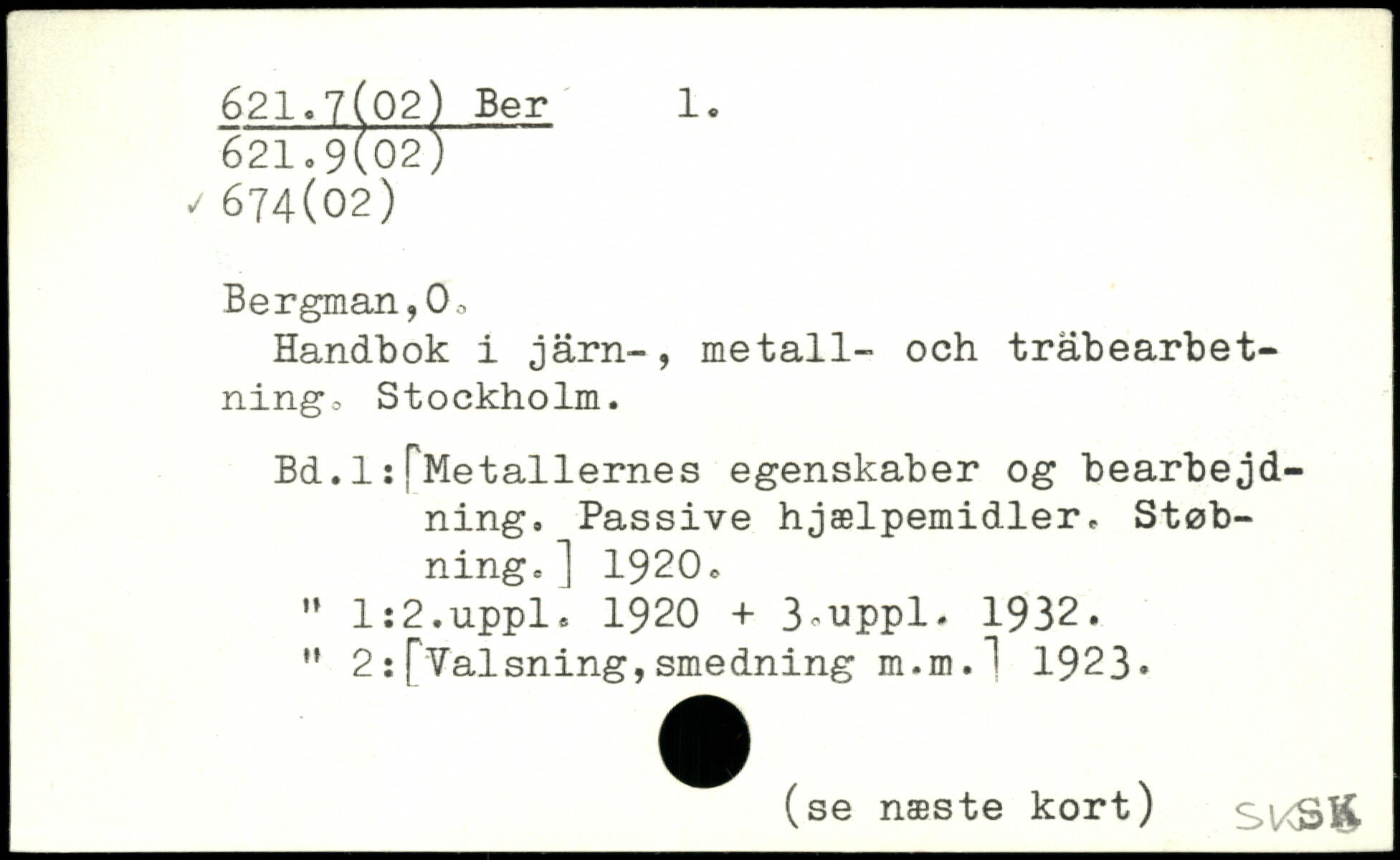 Handbok i järn-, metall- och träbearbetning, Stockholm.