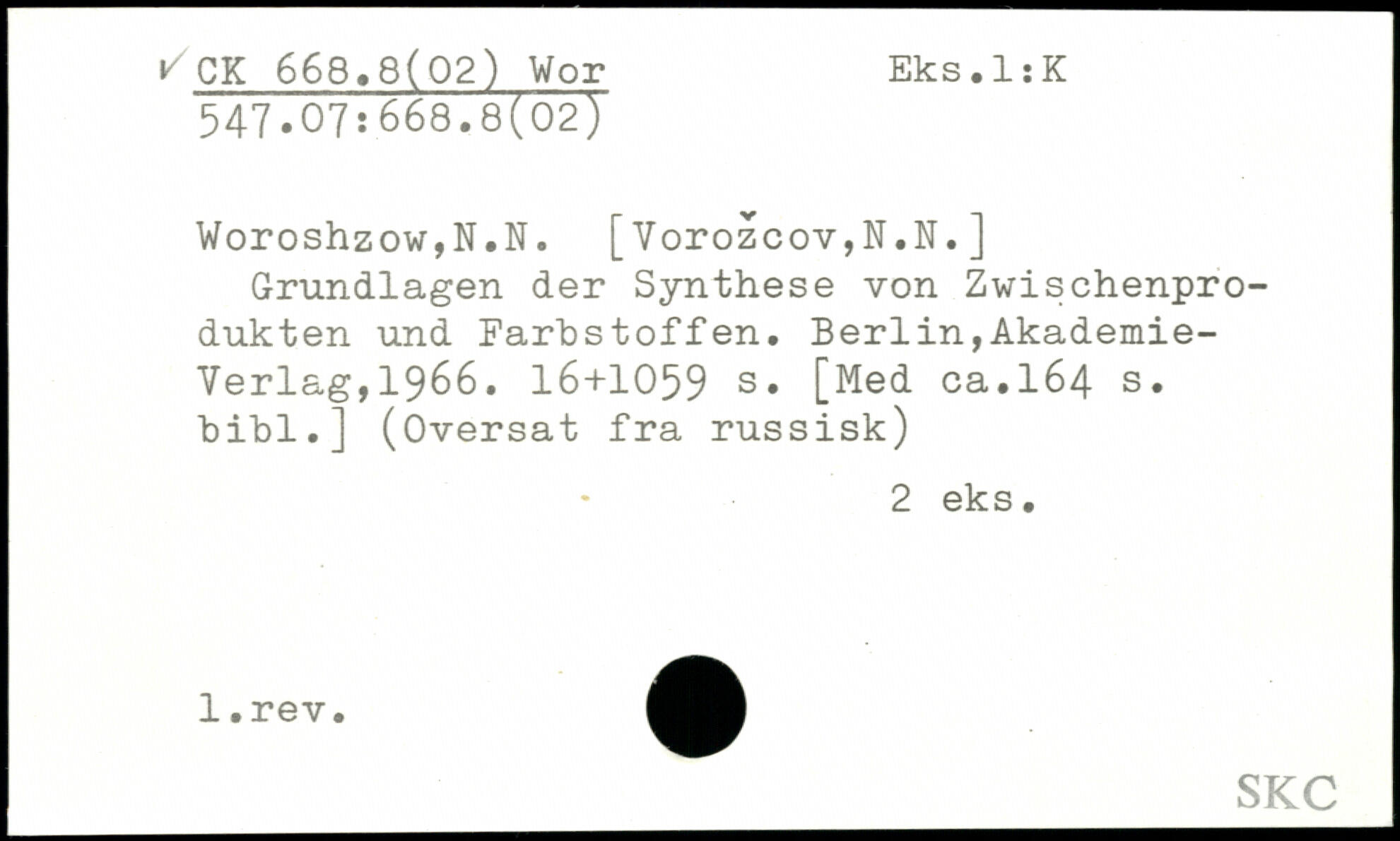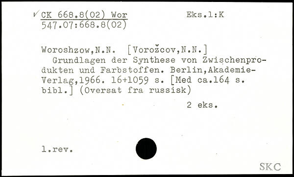 Woroshzow,N.N. [Vorozcov,N.N.] Grundlagen der Synthese von Zwischenprodukten und Farbstoffen.