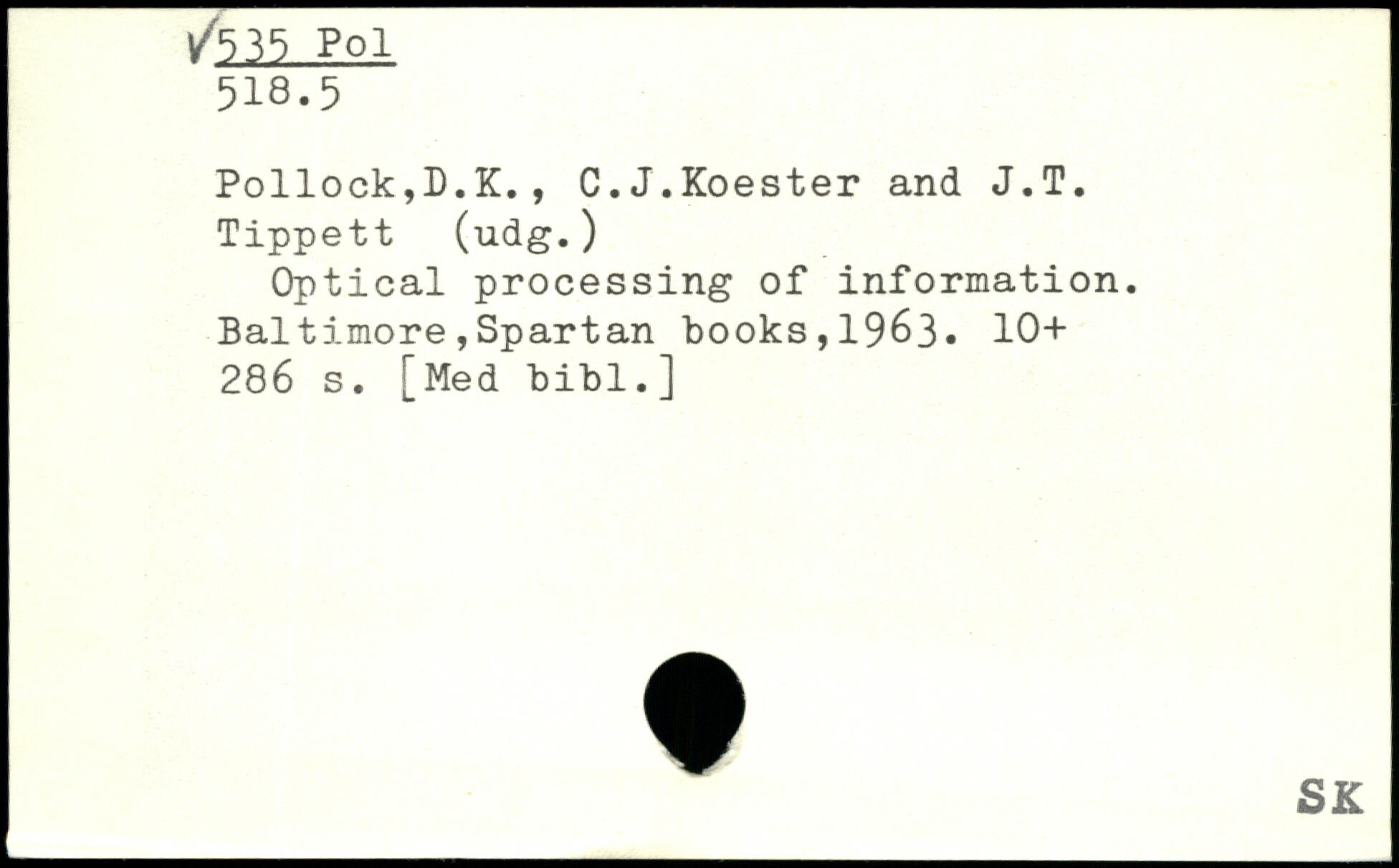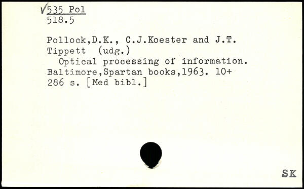 Pollock,D.K., C.J.Koester and J.T. Tippett (udg.) Optical processing of information.