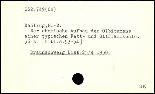 Behling,Re-D. Der chemische Aufhau der Ölbitumens einer typischen Fett- und Gasflammkohle0