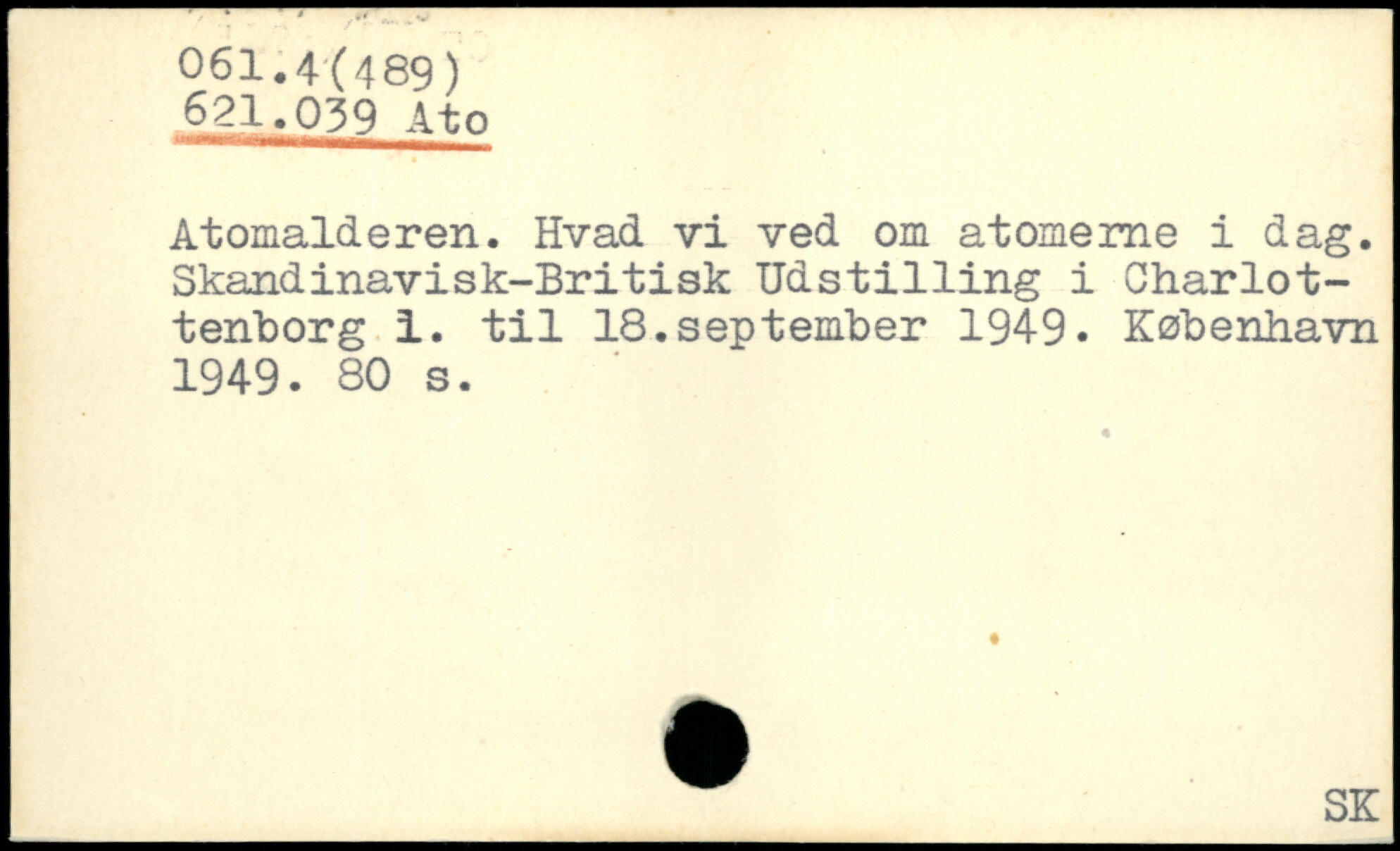 Atomalderen. Hvad vi ved om atomerne i dag. Skandinavisk-Britisk Udst1111ng i Charlot-tenborg 1. til 18.september 1949.