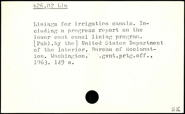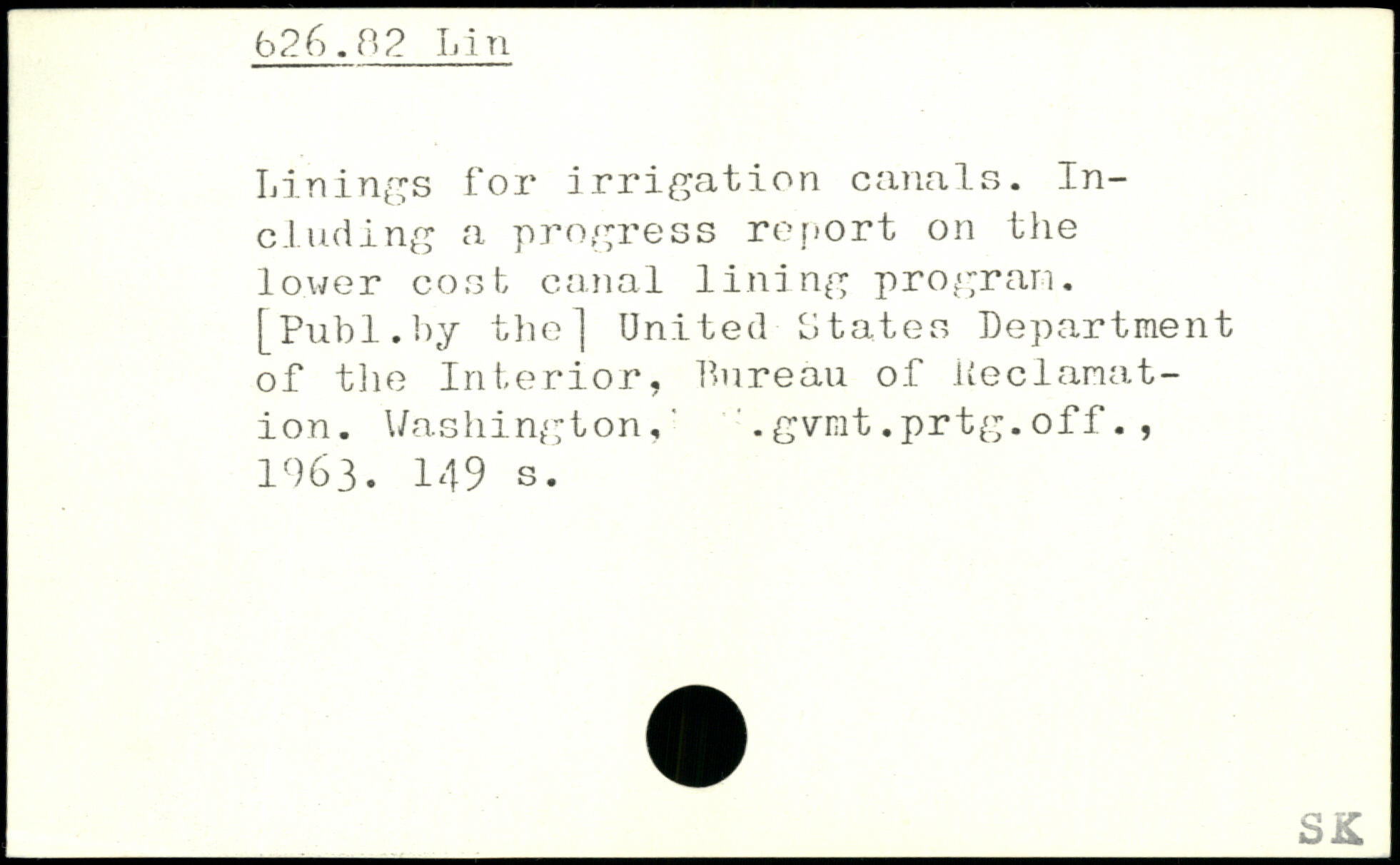 Linings for irrigation canals. Including a progress report on the lower cost canal lining program.