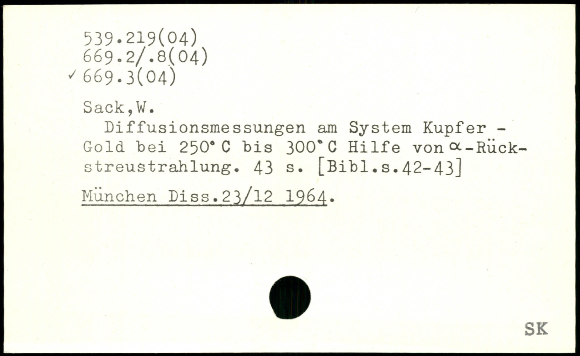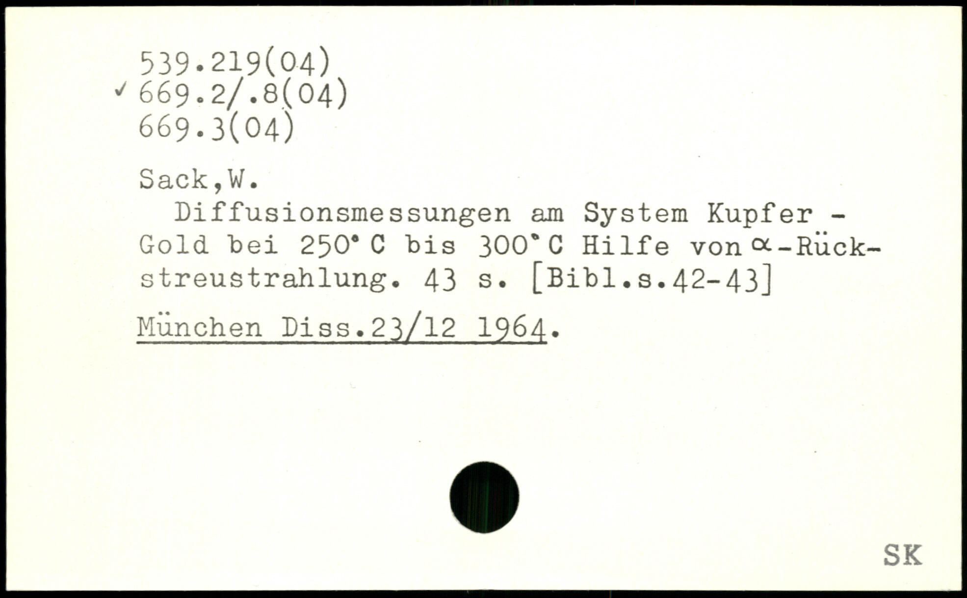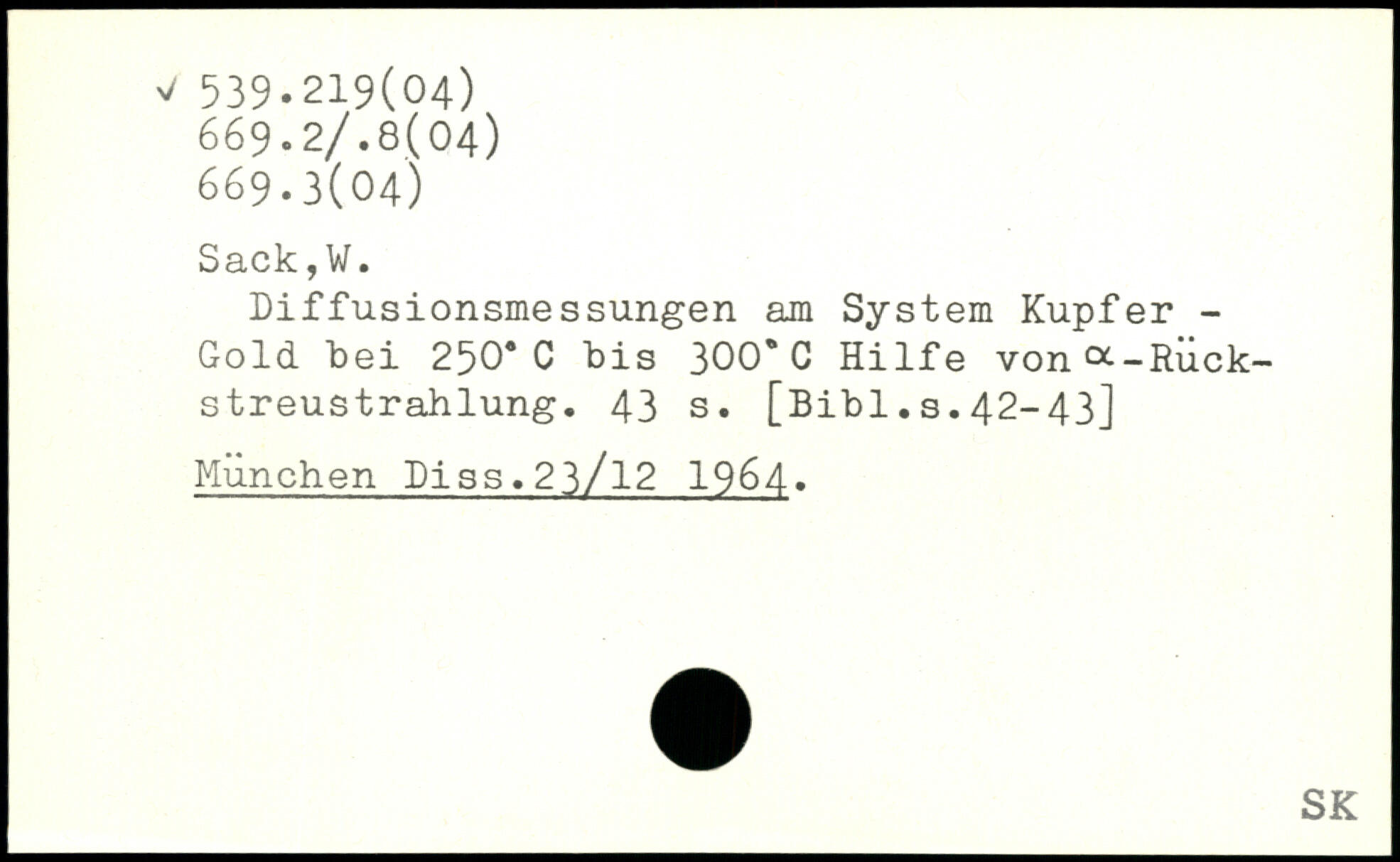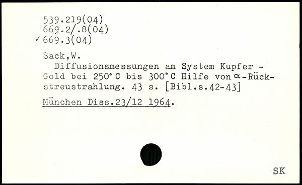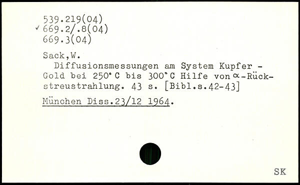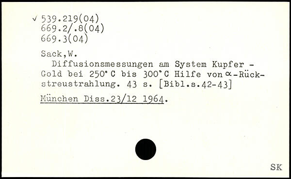 Diffusionsmessungen am System Kupfer -Gold "bei 250. C bis 300. C Hilfe vona-Riick-streustrahlung.