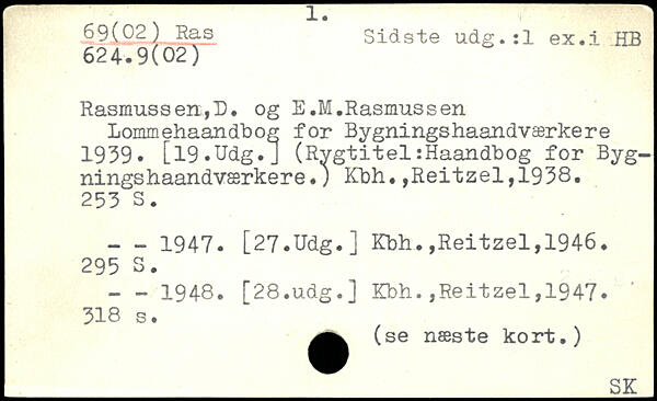 Rasmussen,!), og E.M.Rasmus s en Lommehaandbog for Bygningshaandværkere 1939. [l9.Udg.J (Rvgtitel:Haandbog for Bygningshaandværkere.)