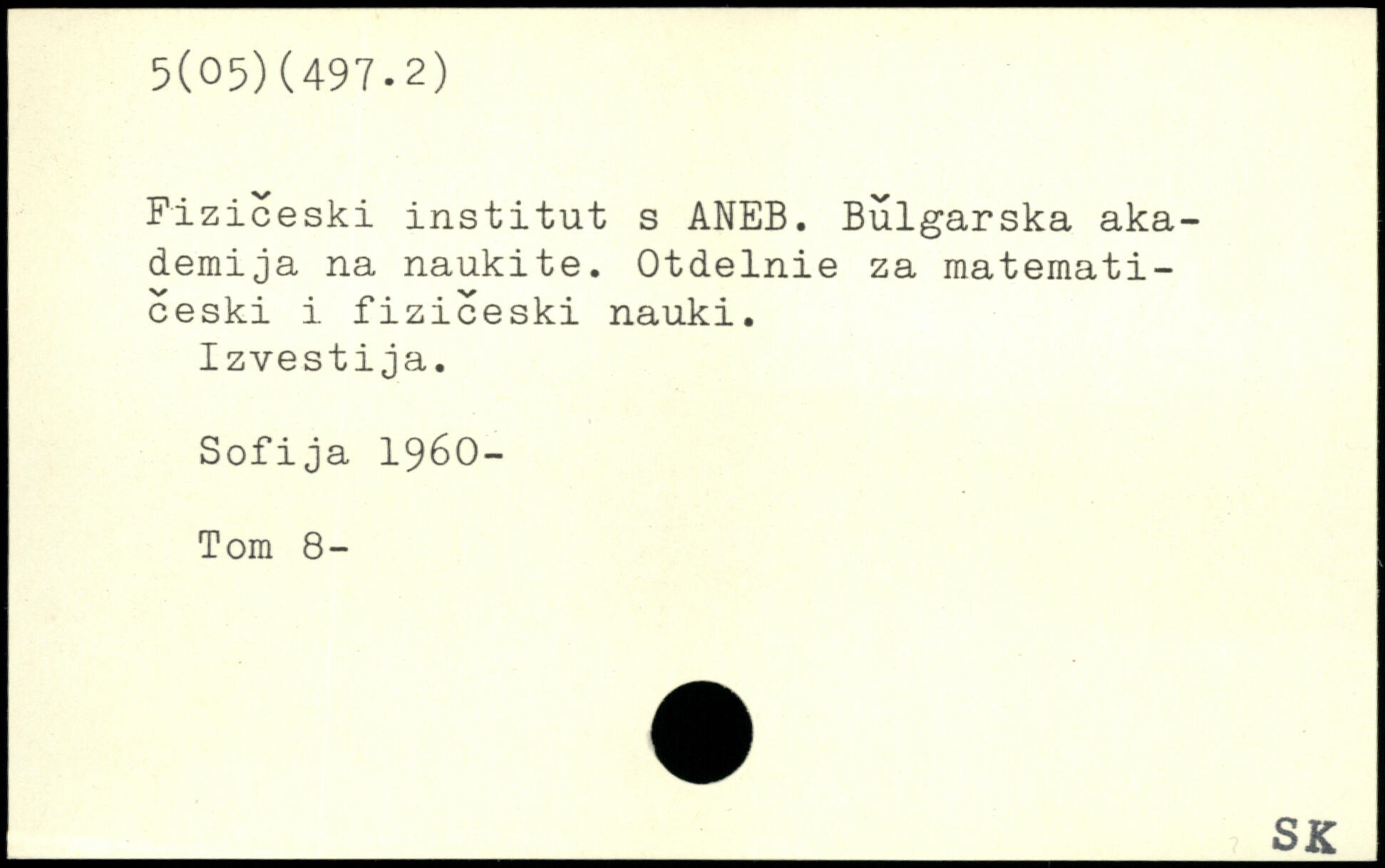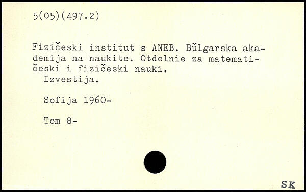 Fiziceski institut s ANEB. Bulgarska aka-demija na naukite. Otdelnie za matemati-ceski i fiziceski nauki. Izvestija. Sofija 1960- Tom 8-