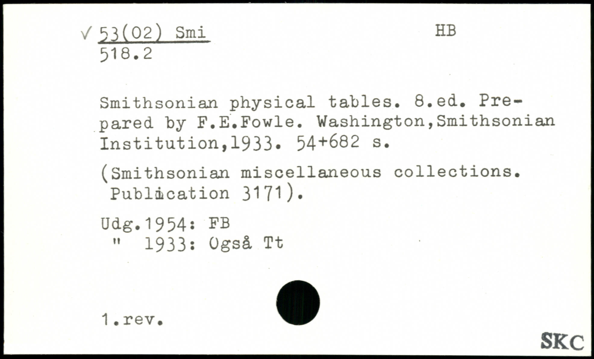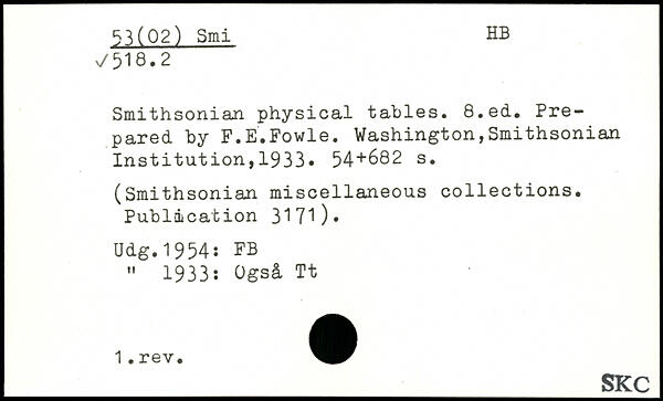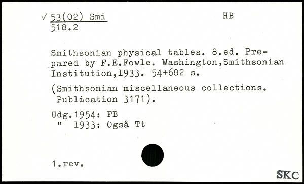 Smithsonian physical tables.