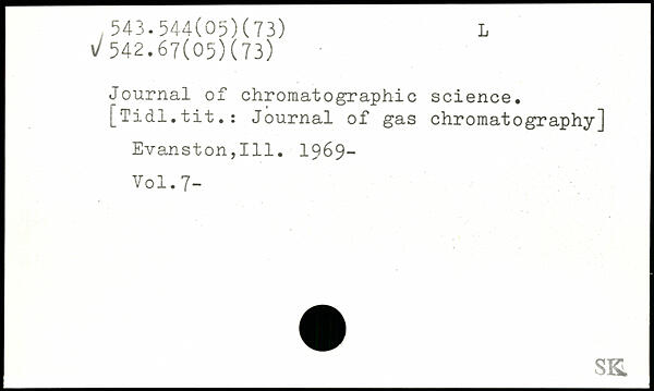 Journal of chromatographic science. [Tidl.tit.: Journal of gas chromatography] Evanston,111. 1969-