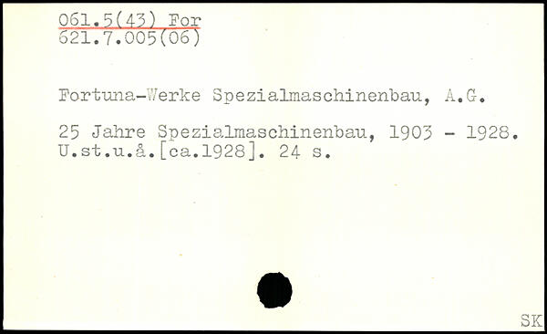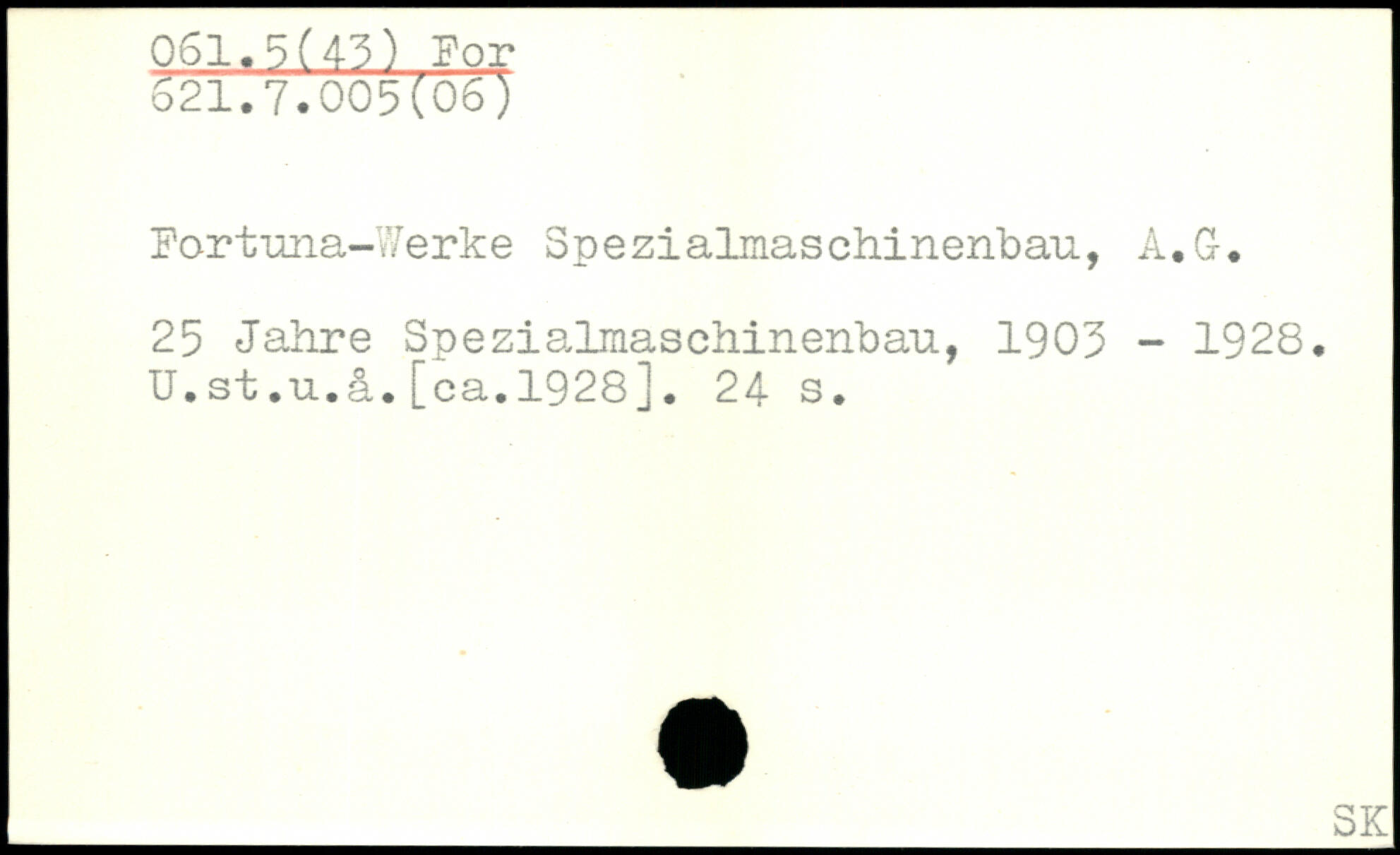 Fortuna-Werke Spezialmaschinenbau, A.G-. 25 Jahre Spezialmaschinenbau, 1903 - 1928. U.st.u.å.[ca.1928].
