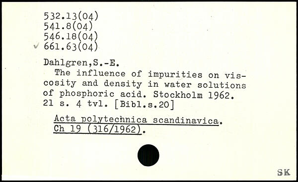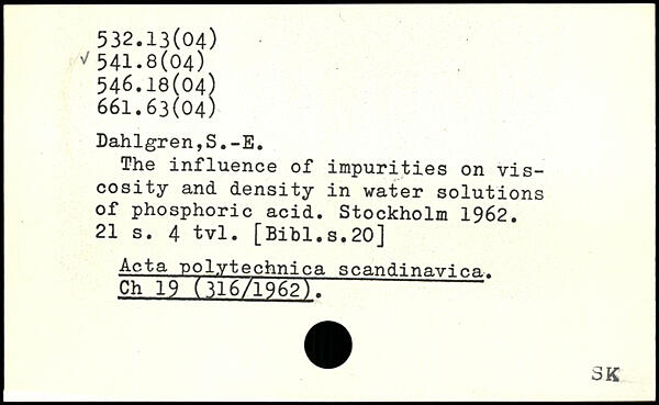 The influence of impurities on viscosity and. density in water solutions of phosphoric acid.